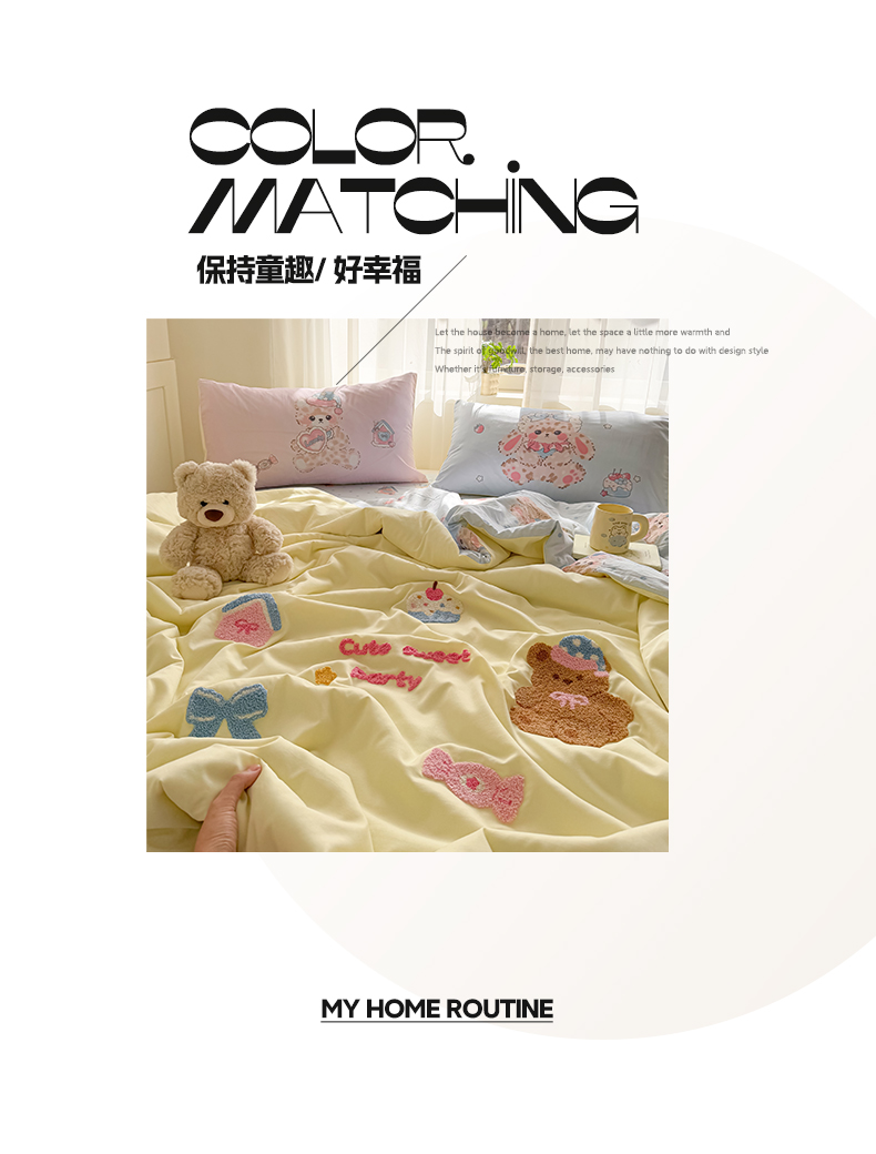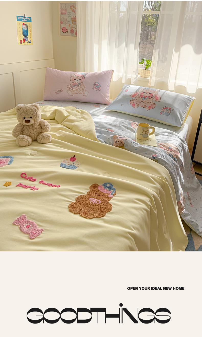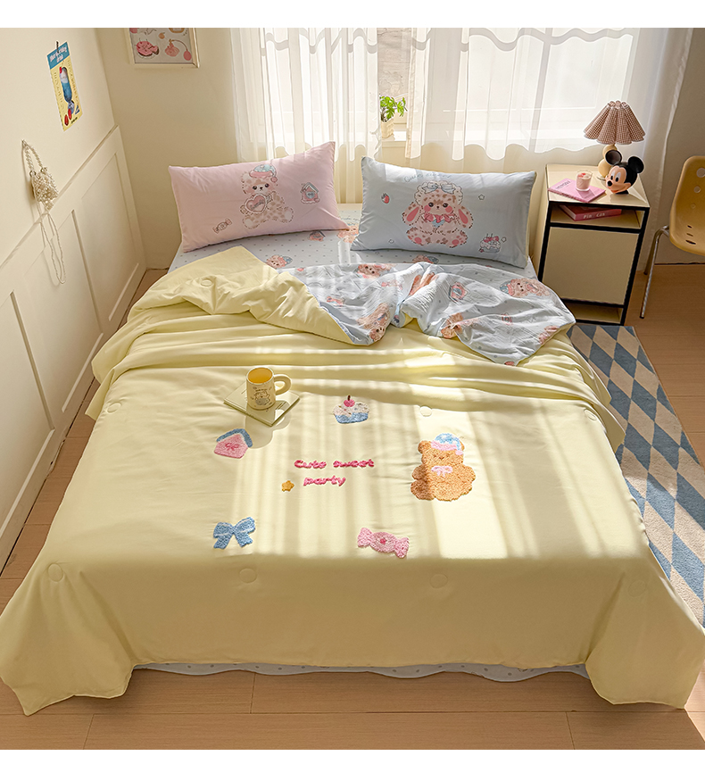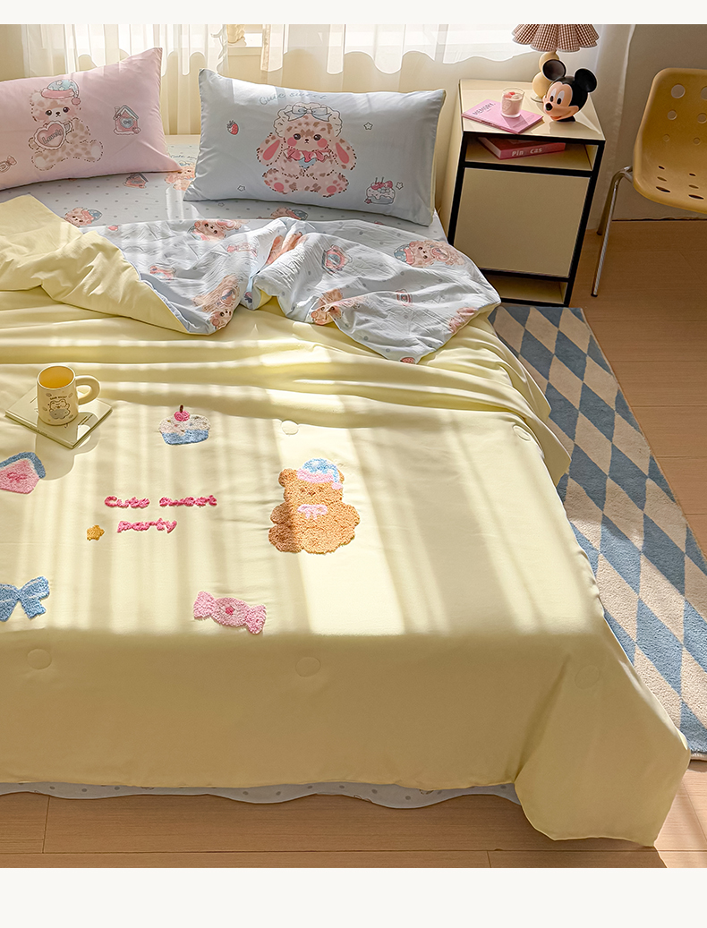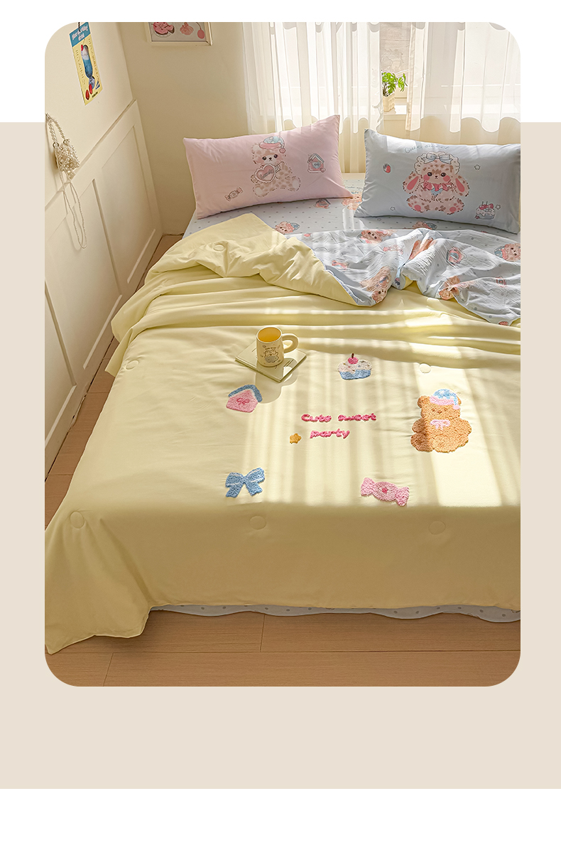 贝扬思 2025新款Lolita毛巾绣夏被套件 脆梨曲奇熊