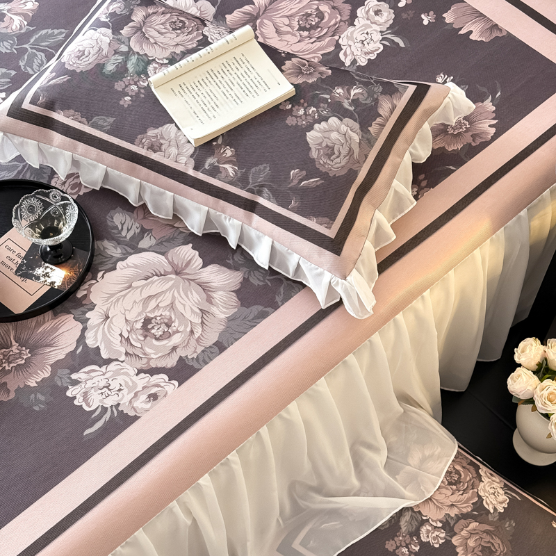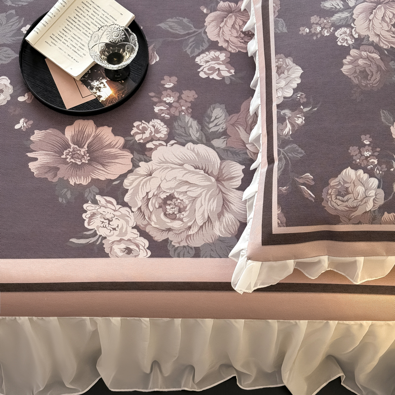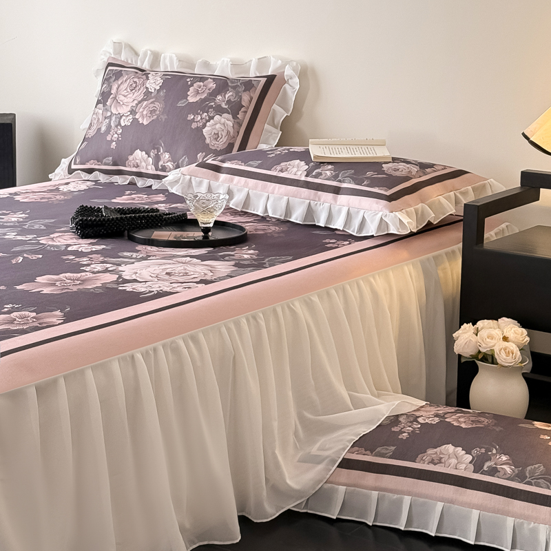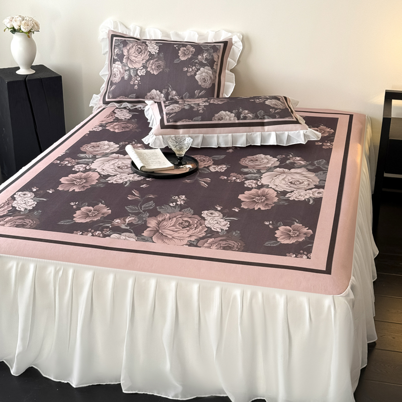 典曼家纺 2025春夏新款高精密800D数码印花冰丝雪纺床裙款凉席席子 阑夜