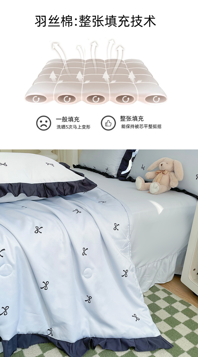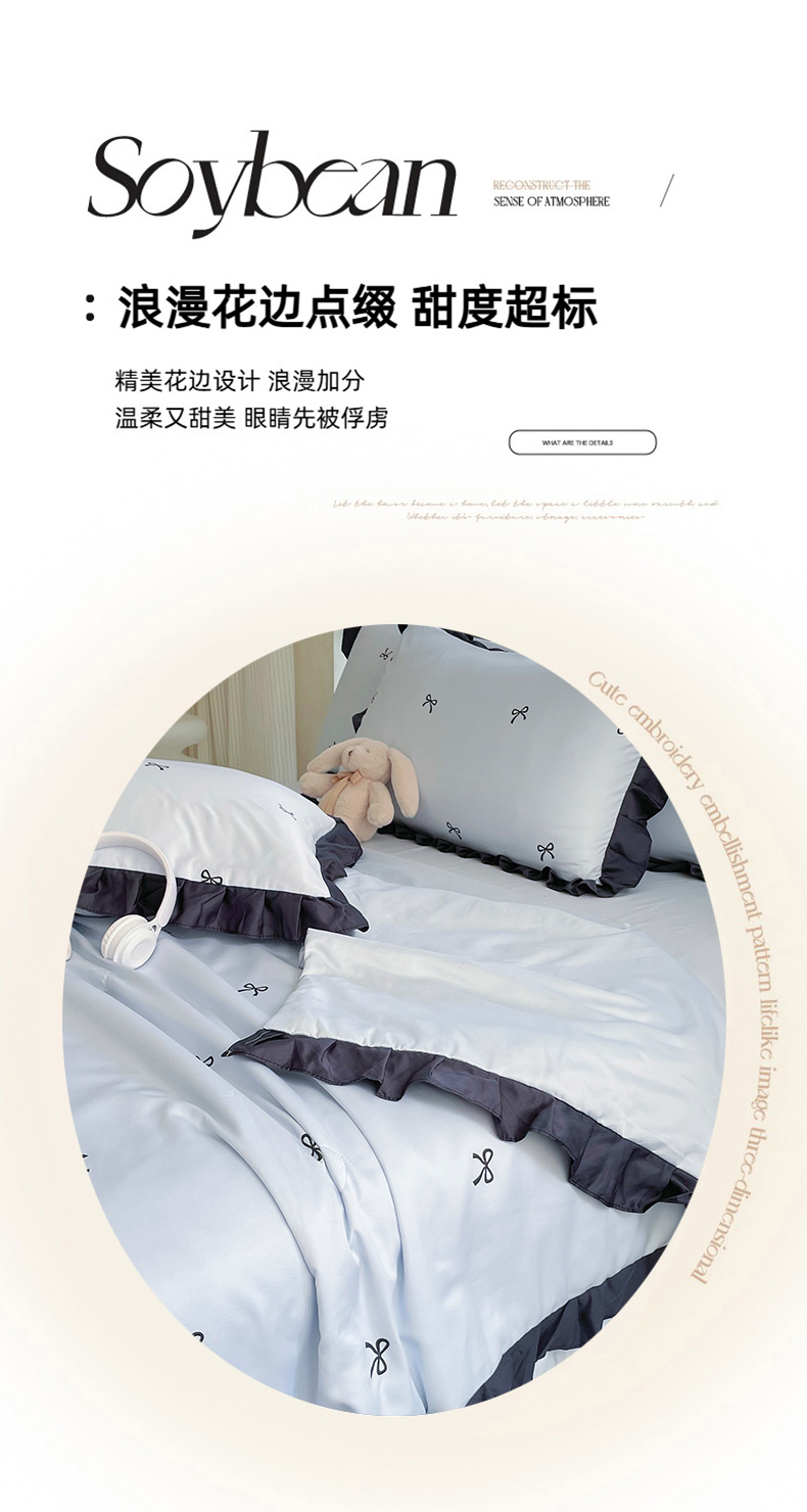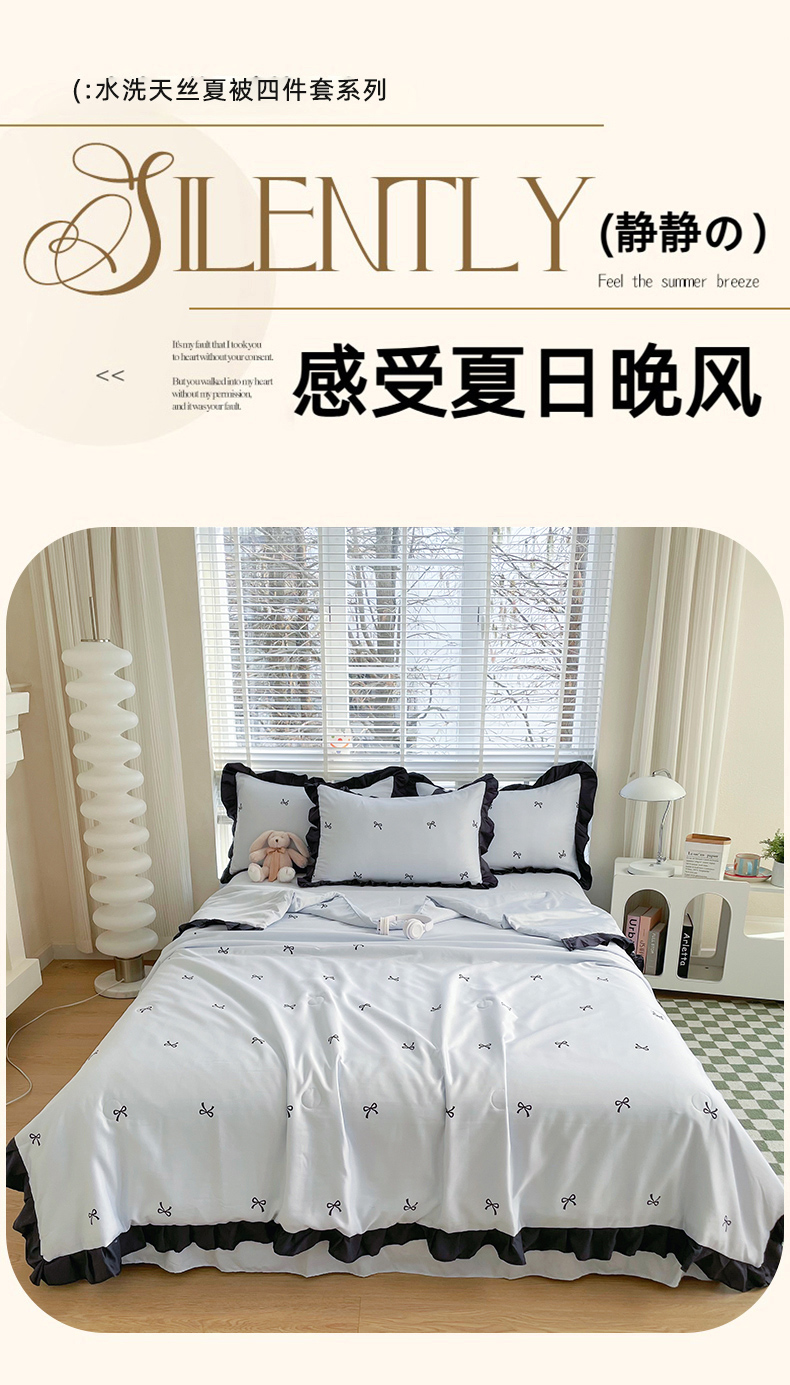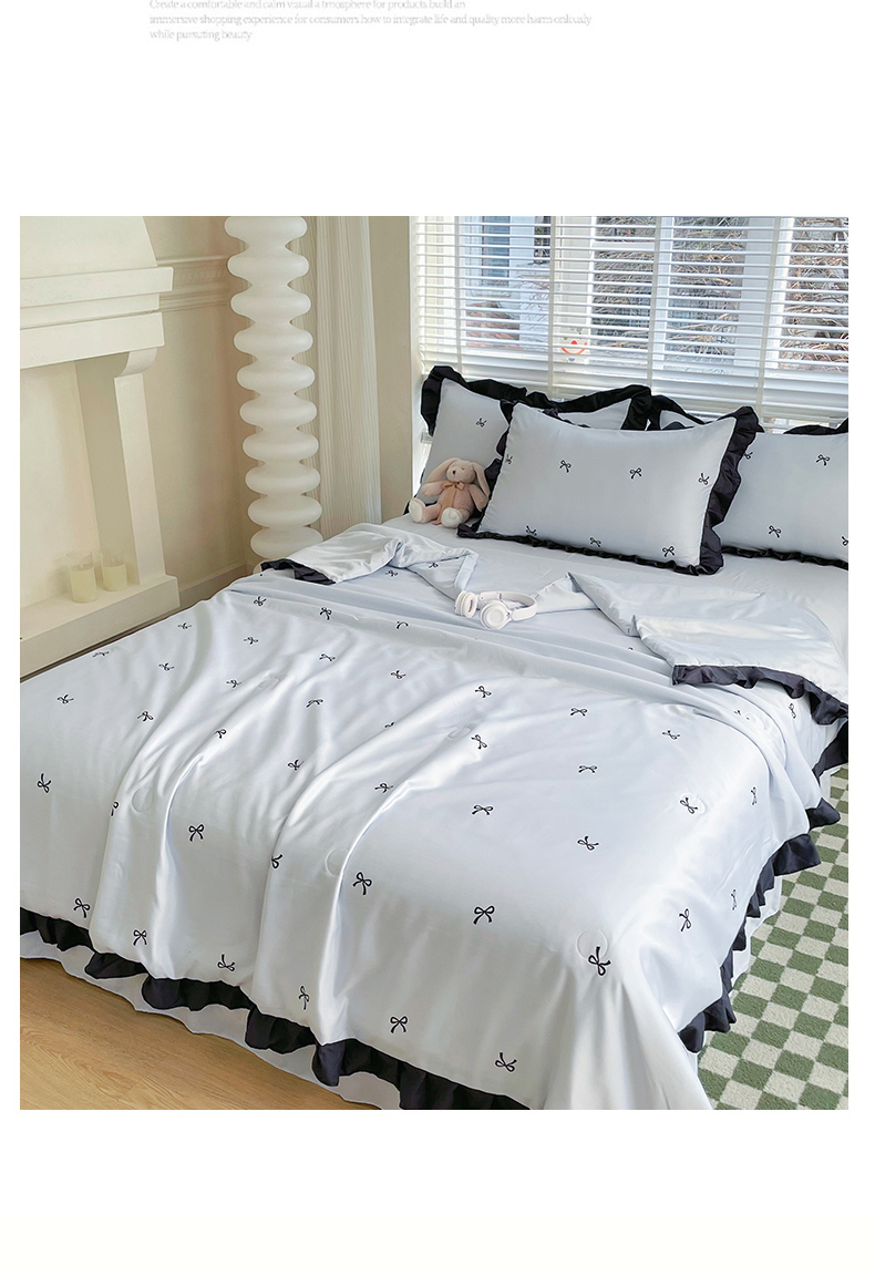 商品名称:绣女坊 2025新款水洗天丝夏被四件套 蓝色蝴蝶结