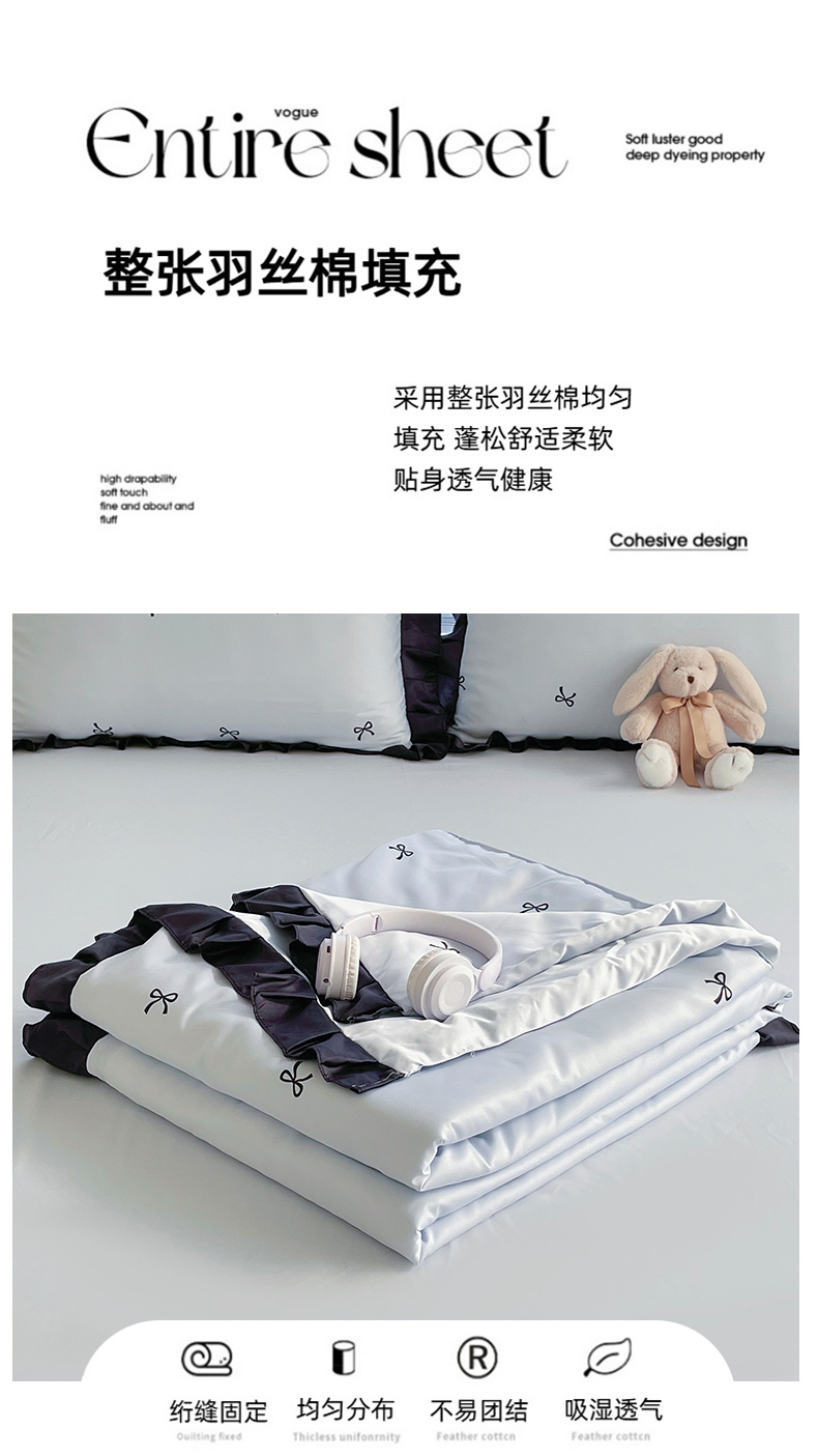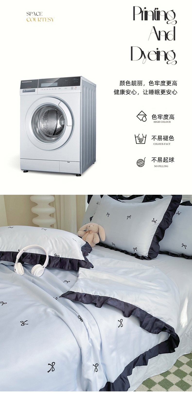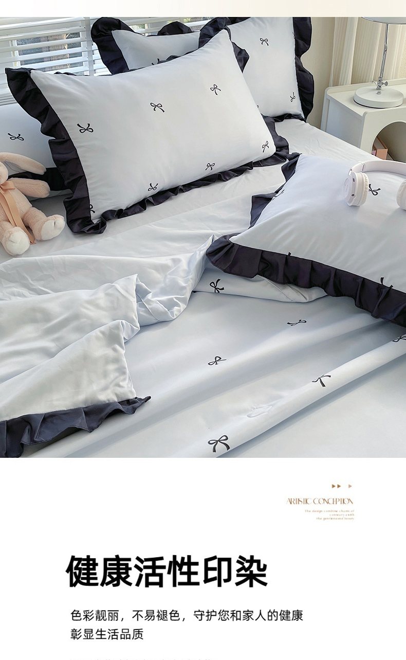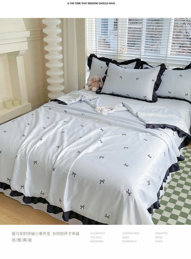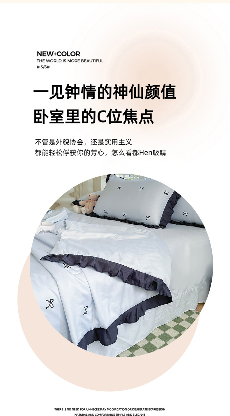 商品名称:绣女坊 2025新款水洗天丝夏被四件套 蓝色蝴蝶结