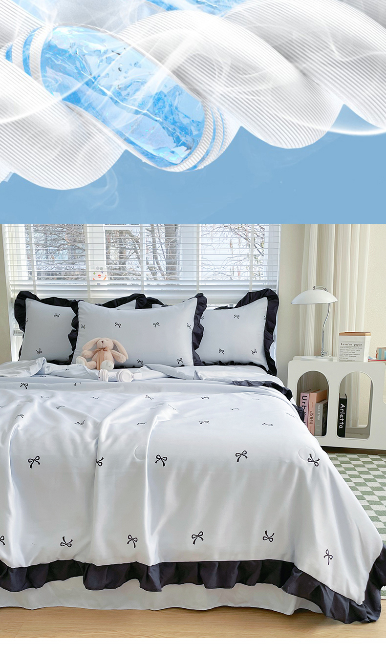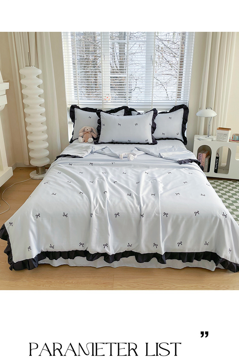 绣女坊 2025新款水洗天丝夏被四件套 蓝色蝴蝶结