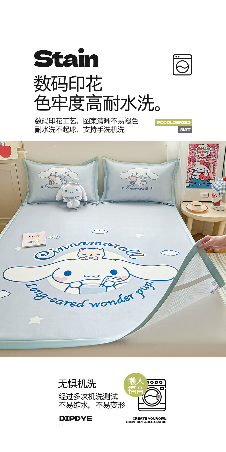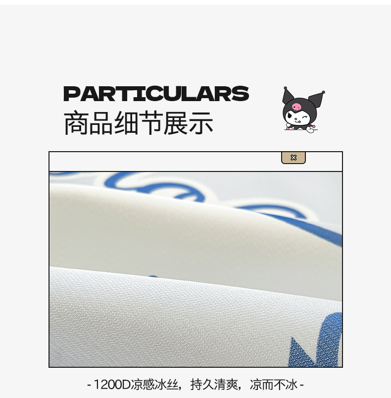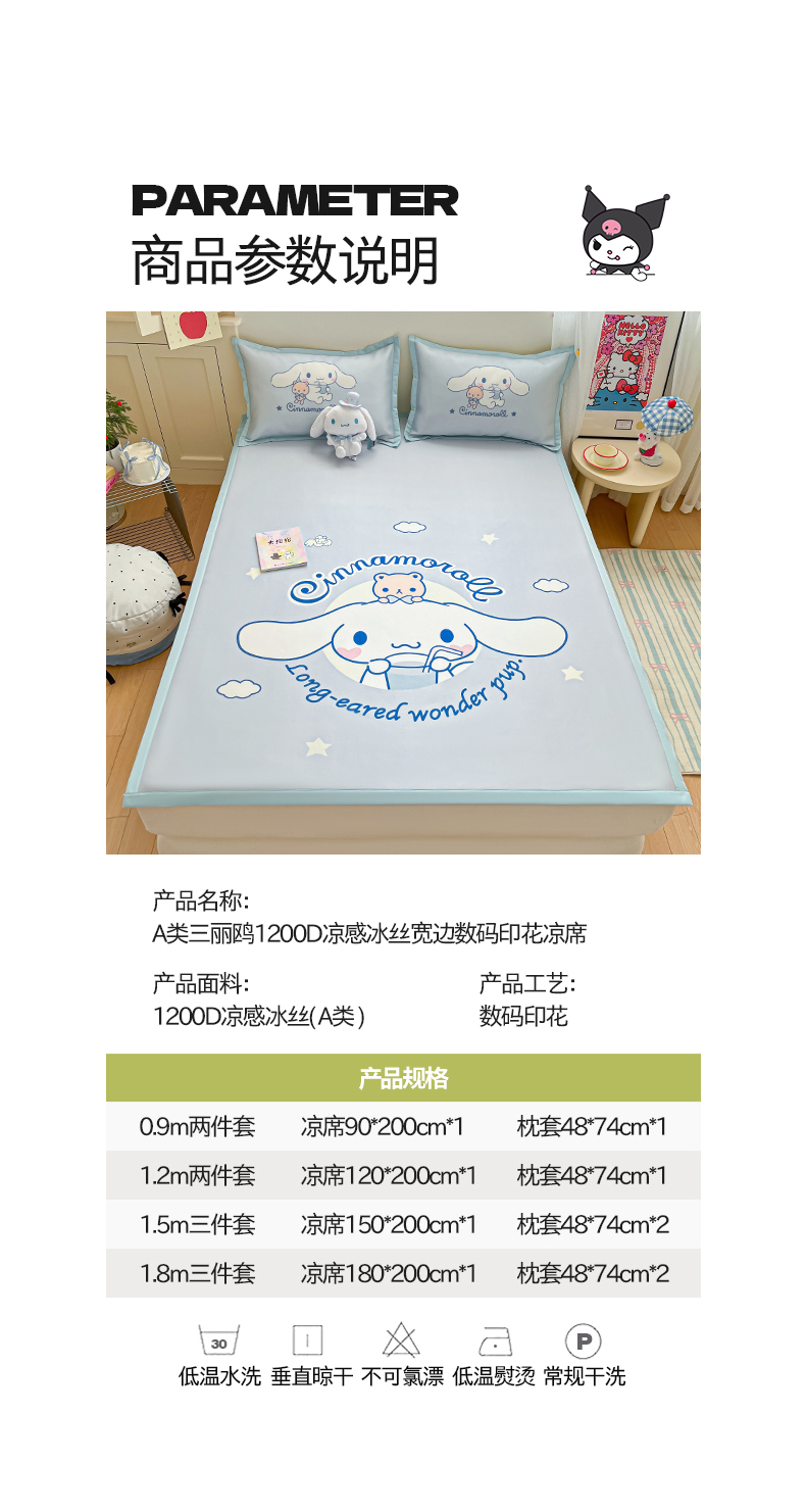 商品名称:(总)桃子家居 2025新款A类三丽鸥授权数码印花中分子1200D凉感冰丝宽边凉感软席席子