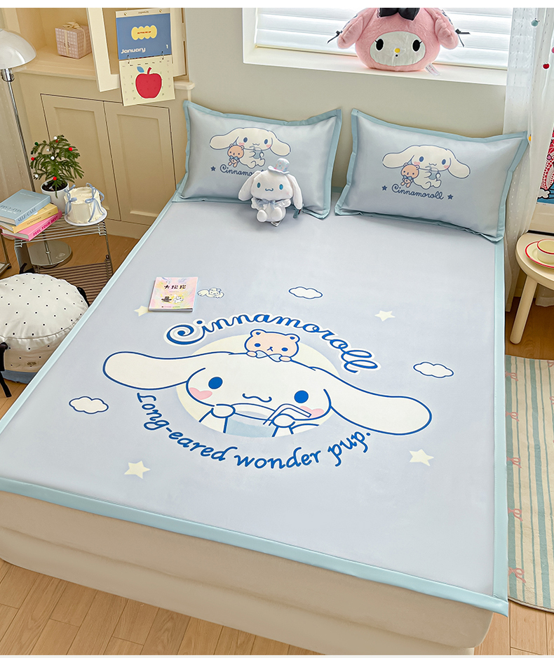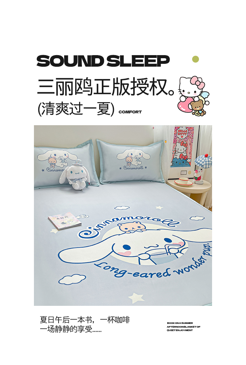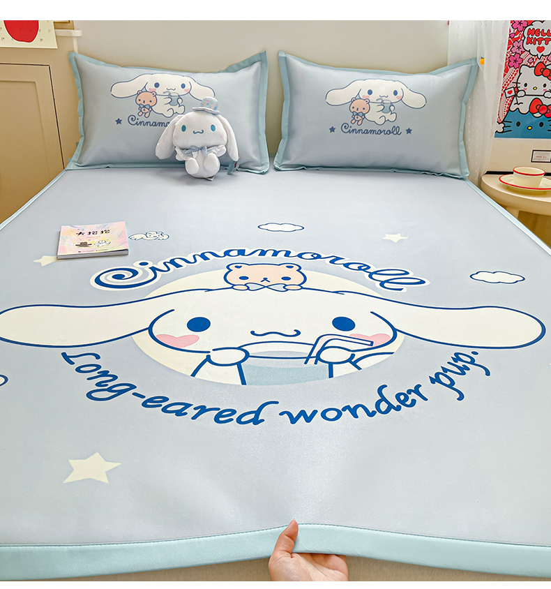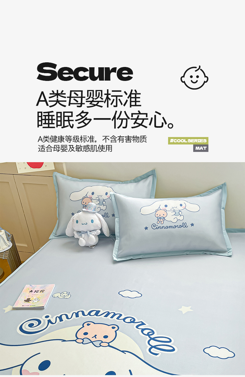 商品名称:(总)桃子家居 2025新款A类三丽鸥授权数码印花中分子1200D凉感冰丝宽边凉感软席席子