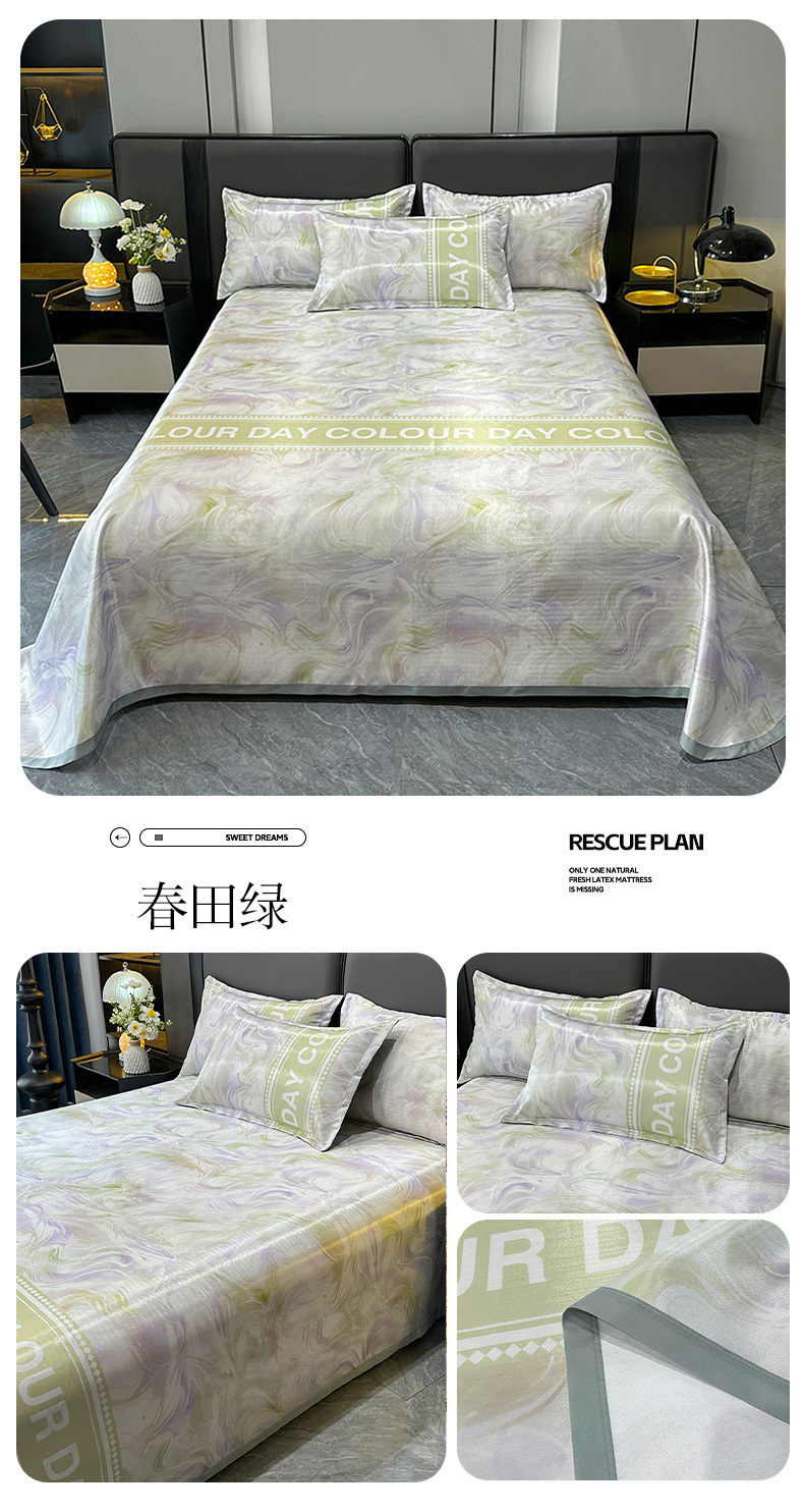 商品名称:许林家纺 2025春夏新款斜纹冰丝凉席轻奢高密大版 春田绿