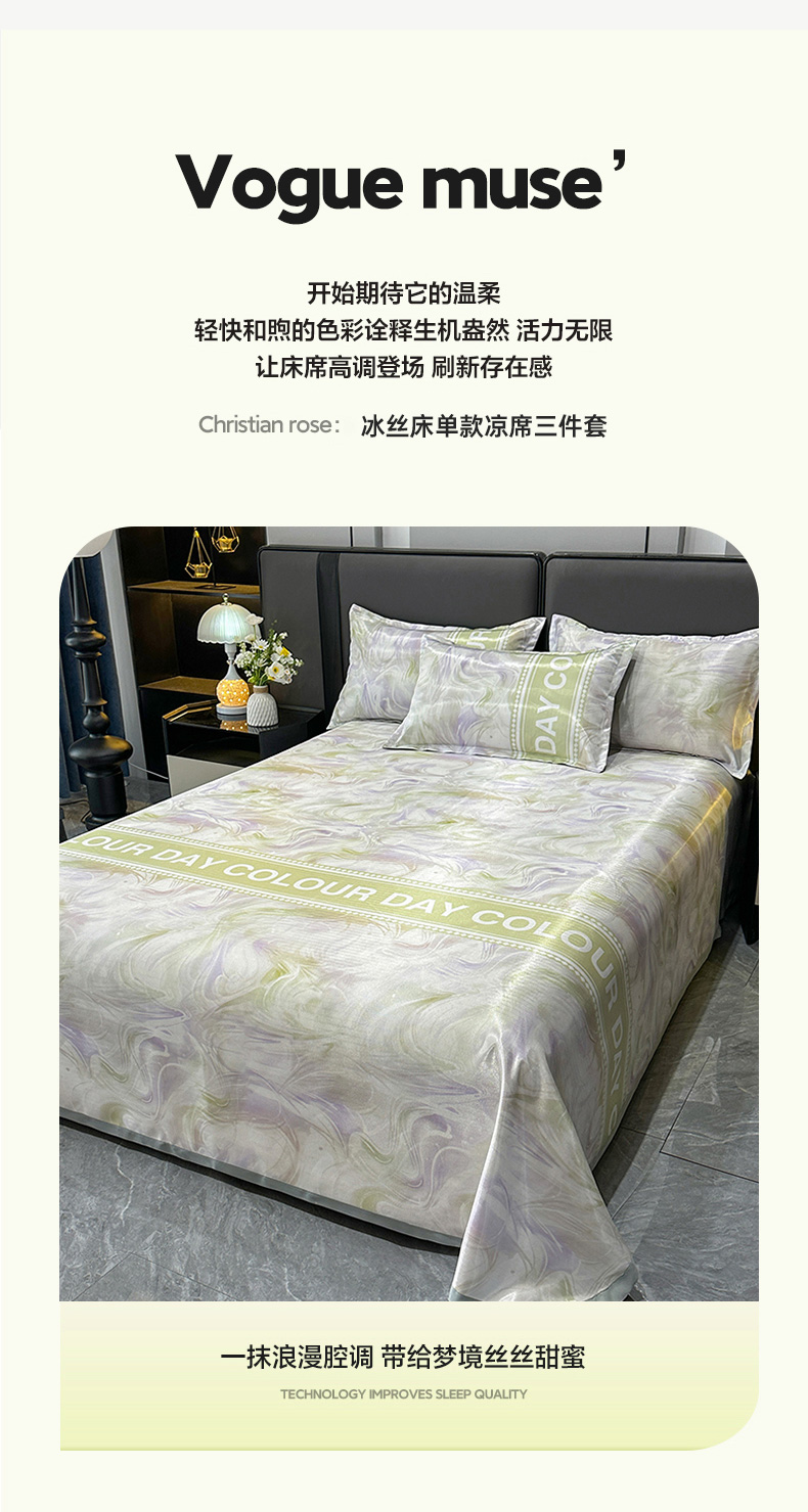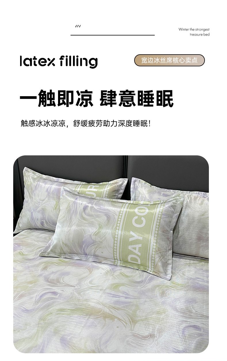 许林 2025新款冰丝凉席床单款凉席三件套-卡米拉,卡米拉