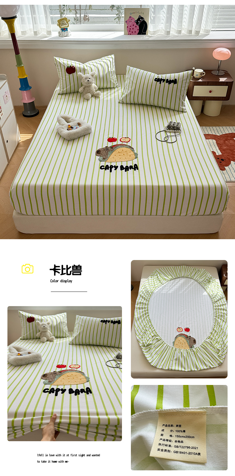 • 91家纺网 家纺一手货源 找家纺 蓝邻家纺 2025春夏新款全棉纯棉老粗布刺绣床笠凉席席子 可可狗
