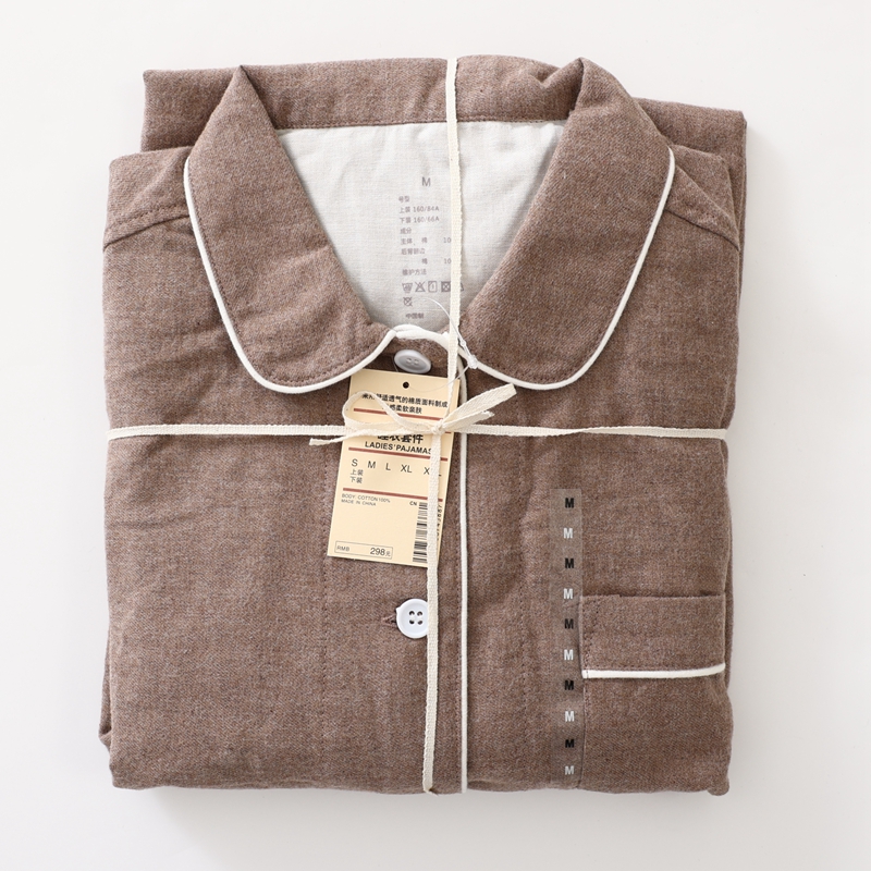 商品名称:伊嫚家居 2025新款无印日式双股全棉法兰绒家居服良品睡衣女纯棉直播秋冬款情侣睡衣 纯棕色男