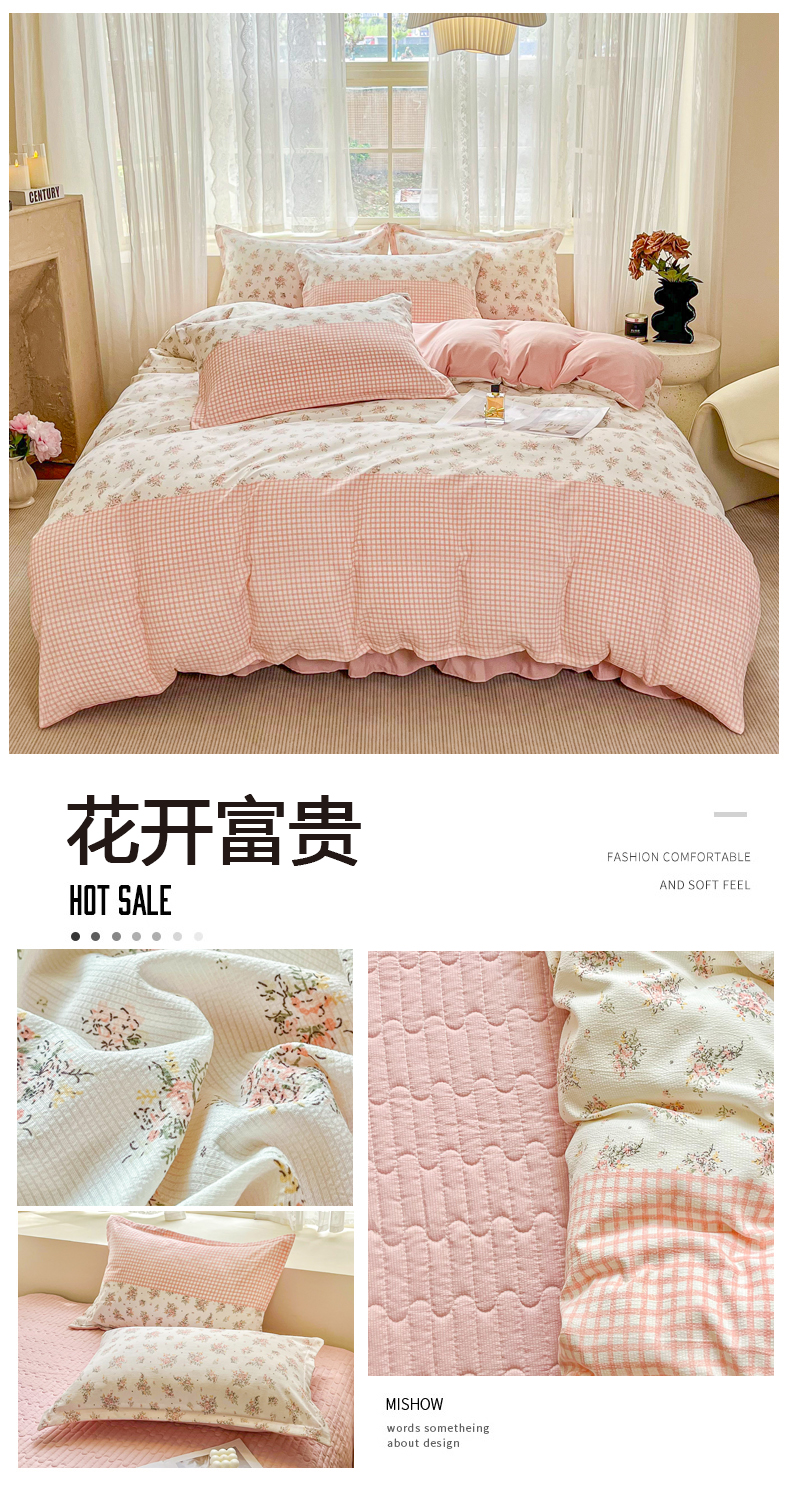 (总)2026春夏新款拼色提花双层纱古法水洗床盖四件套提花云感棉,啵啵熊,春暖花开,春暖花开粉,蝶梦成真,花开富贵,浪漫主义蓝,浪漫主义紫,蘑菇力,南瓜派灰,南瓜派咖,雅韵,雅韵紫