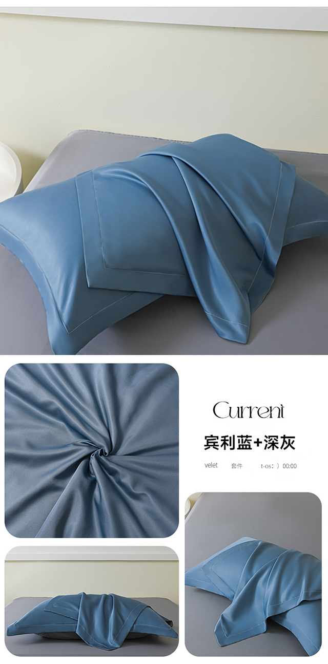 商品名称:多乐家纺 2025新款水洗冰丝真丝纯色双拼枕套 宾利蓝+深灰