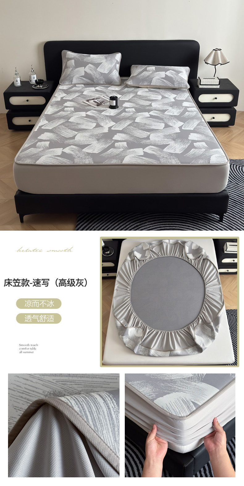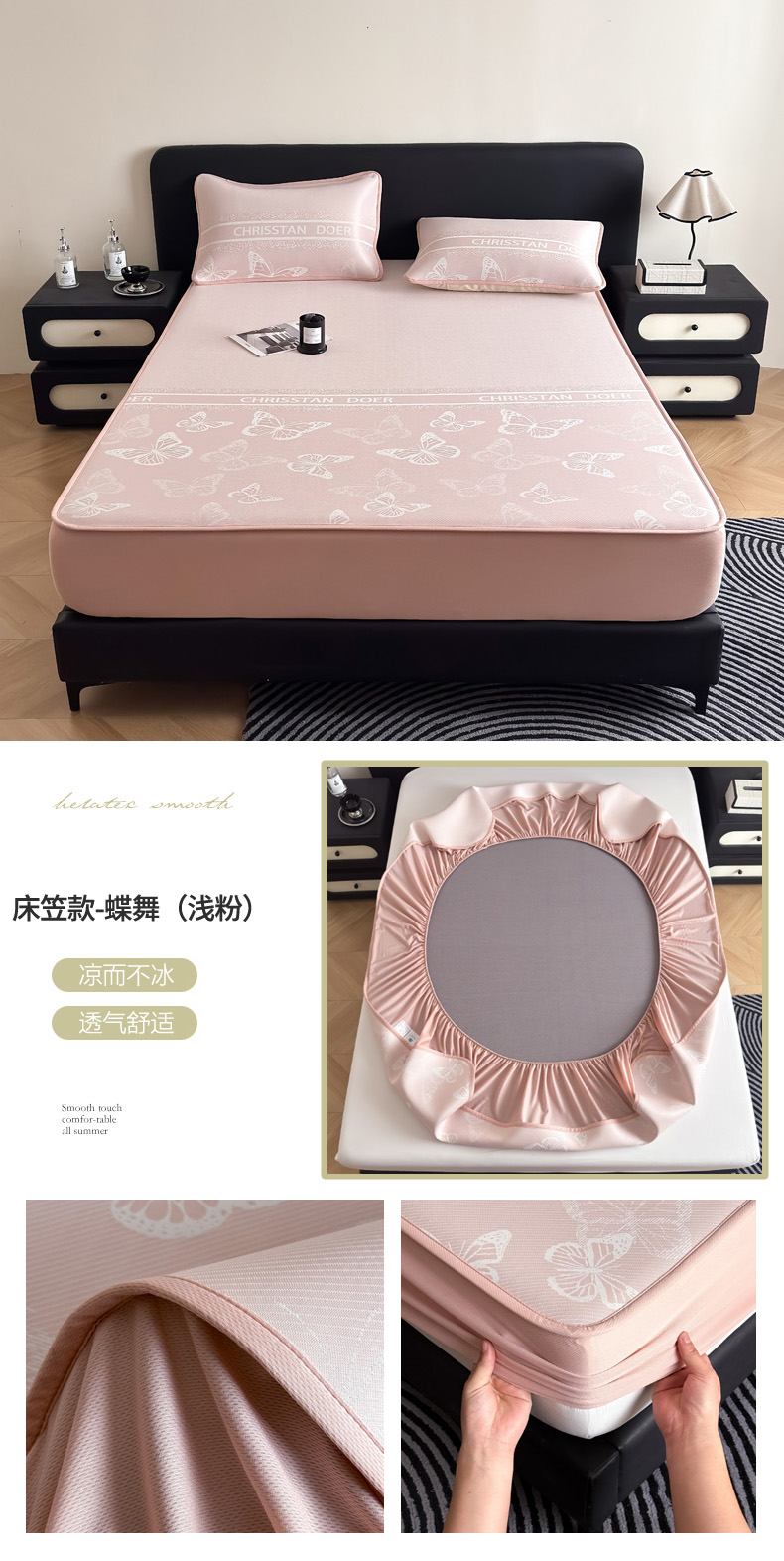 九花鹿2024新款A类大版碳光冰丝凉席床笠款三件套四件套,大版床笠款-漂亮女孩