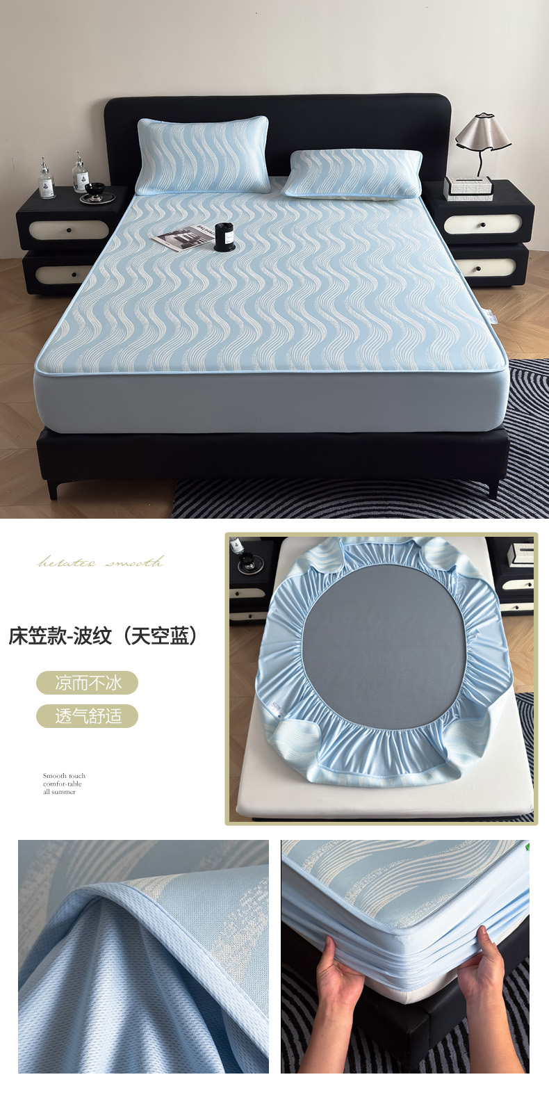 九花鹿2024新款A类大版碳光冰丝凉席床笠款三件套四件套,大版床笠款-派对小熊