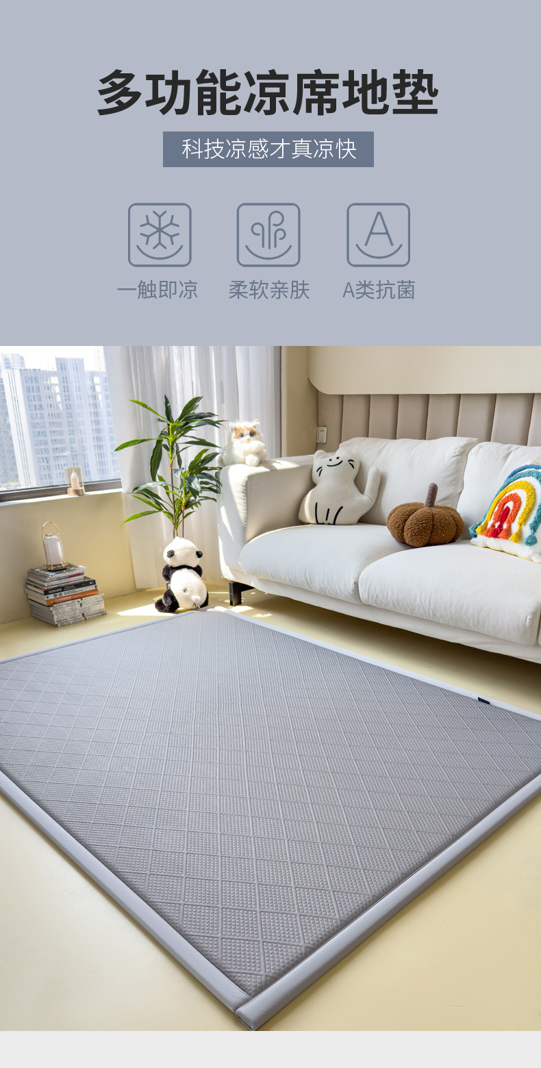 (总)席世家 2025新款凉感肌理多功能地垫凉席垫,肌理-灰,肌理-蓝,肌理-绿