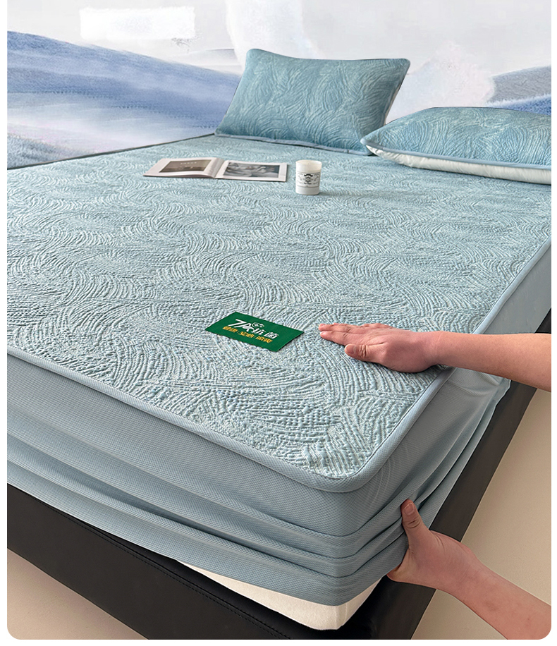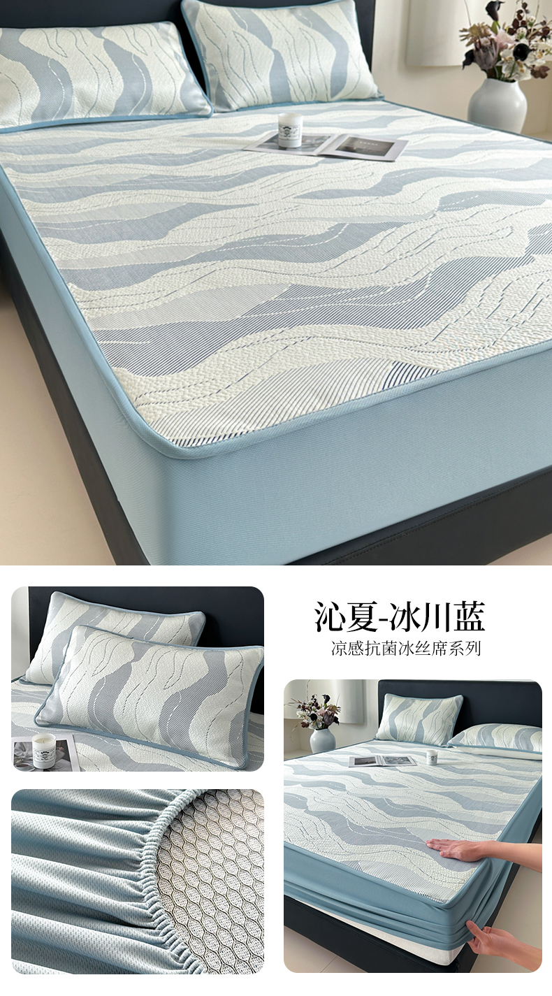 当前位置: 91家纺网 > 商品网购 > 床上用品 > 凉席 > 冰丝席 > 鑫钰 2025新款A类进口PE高冷感凉席高端聚乙烯凉豆豆高克重480克冰丝凉席床笠三件套 云锦-冰川蓝