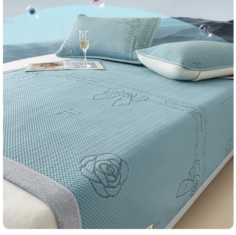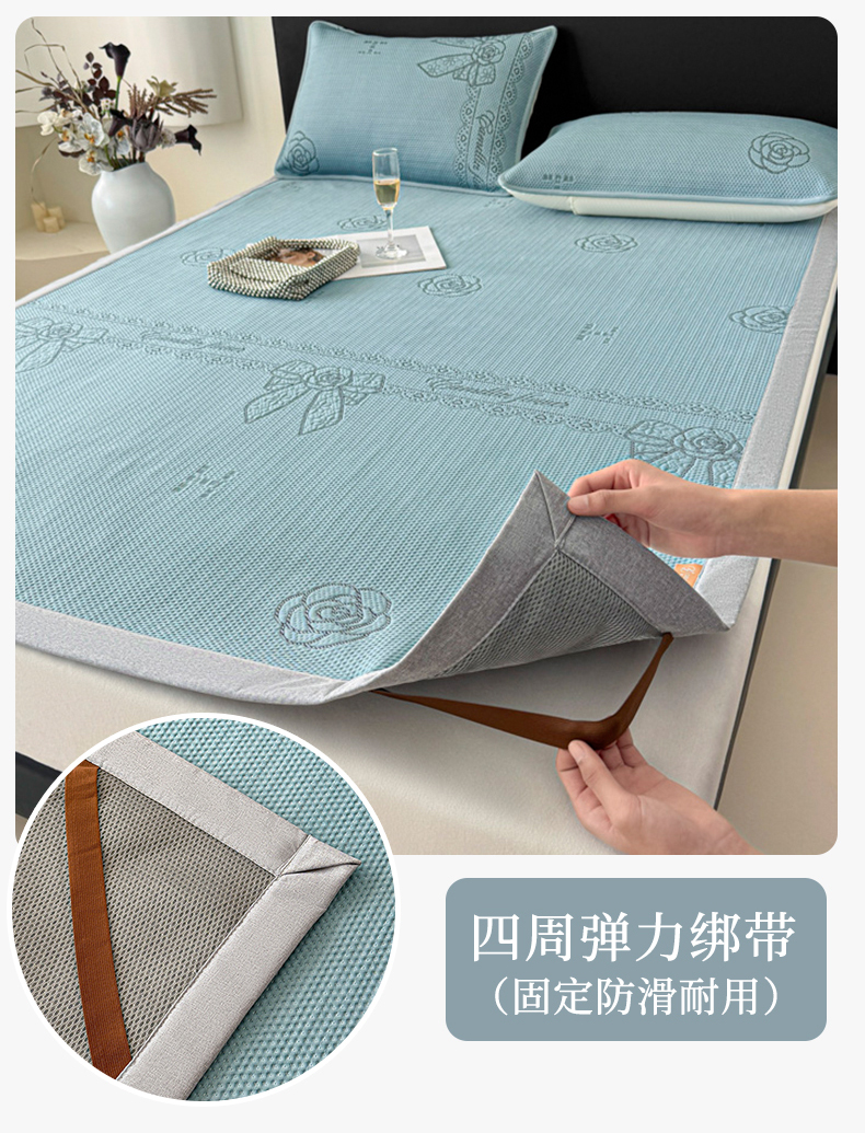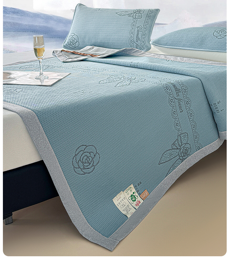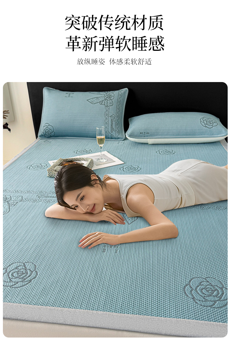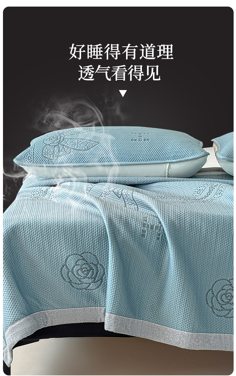 当前位置: 91家纺网 > 商品网购 > 床上用品 > 凉席 > 冰丝席 > 鑫钰 2025新款A类进口PE高冷感凉席高端聚乙烯凉豆豆高克重480克冰丝凉席床席三件套 山茶物语-蓝