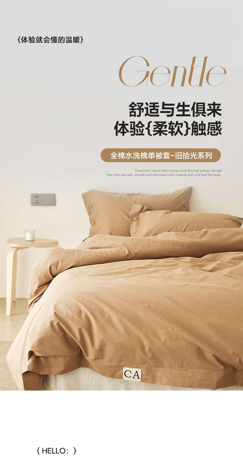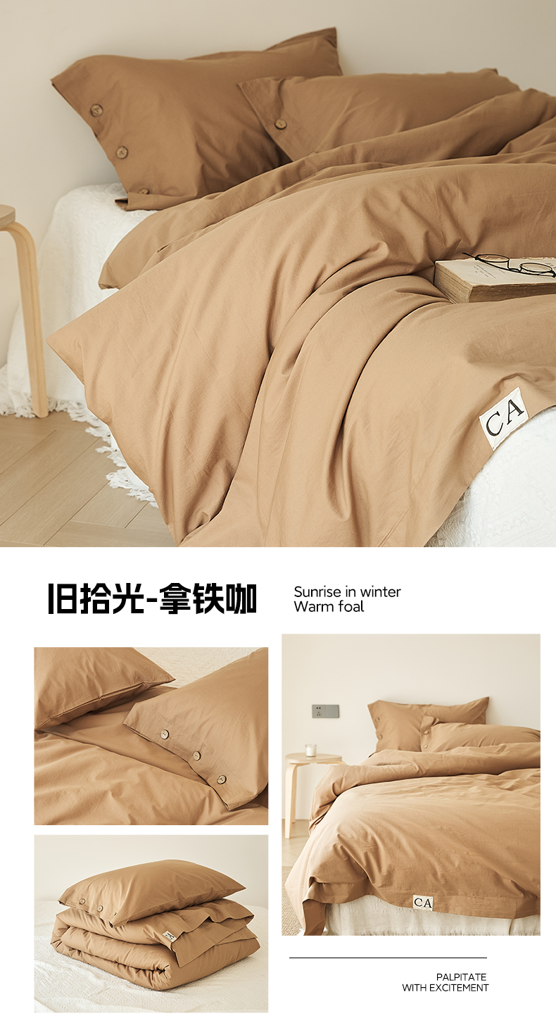 • 91家纺网 家纺一手货源 找家纺 EH家居 2025新款旧拾光系列全棉水洗棉单品被套 旧拾光-拿铁咖