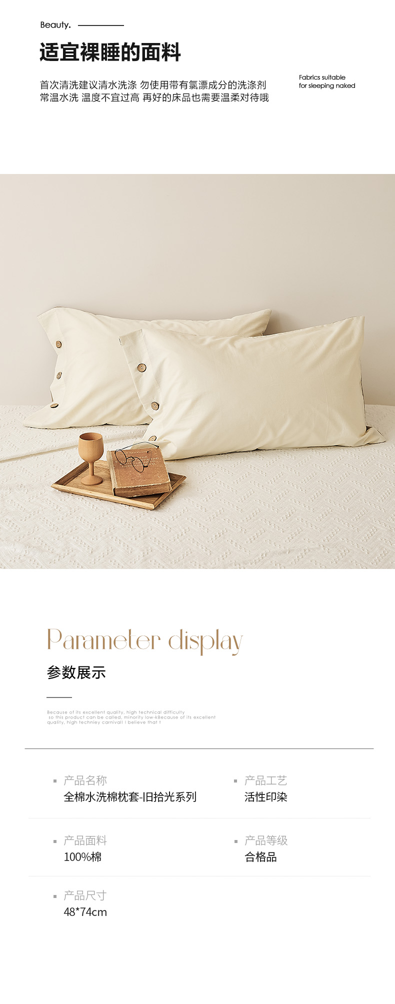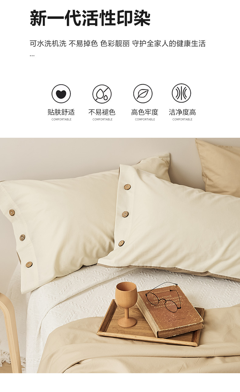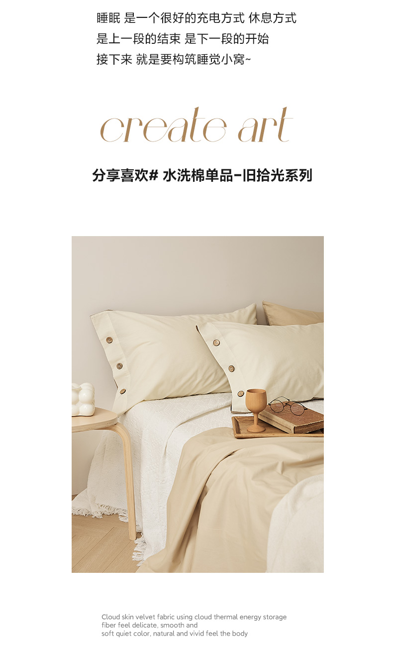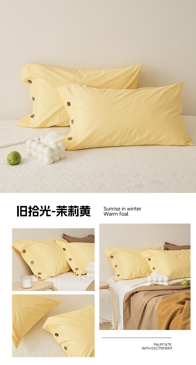 商品名称:EH家居 2025新款旧拾光系列全棉水洗棉单品枕套 旧拾光-米咖
