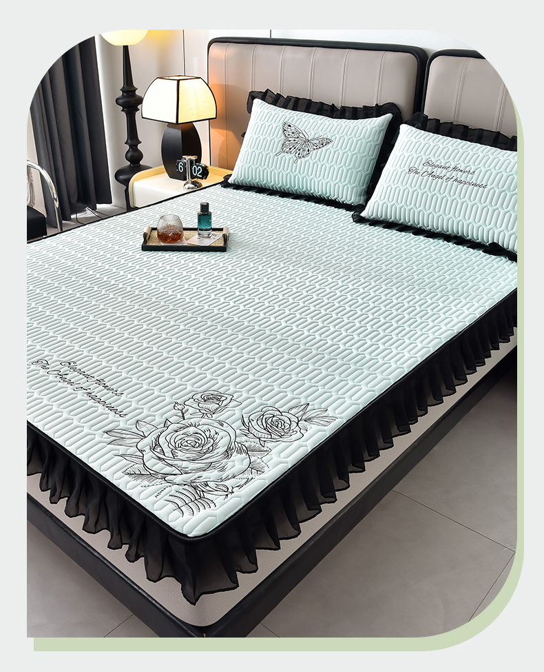炫拼家纺 2025春夏新款A类凉感丝花边床笠款乳胶凉席-法式玫瑰 法式玫瑰-冰雪蓝