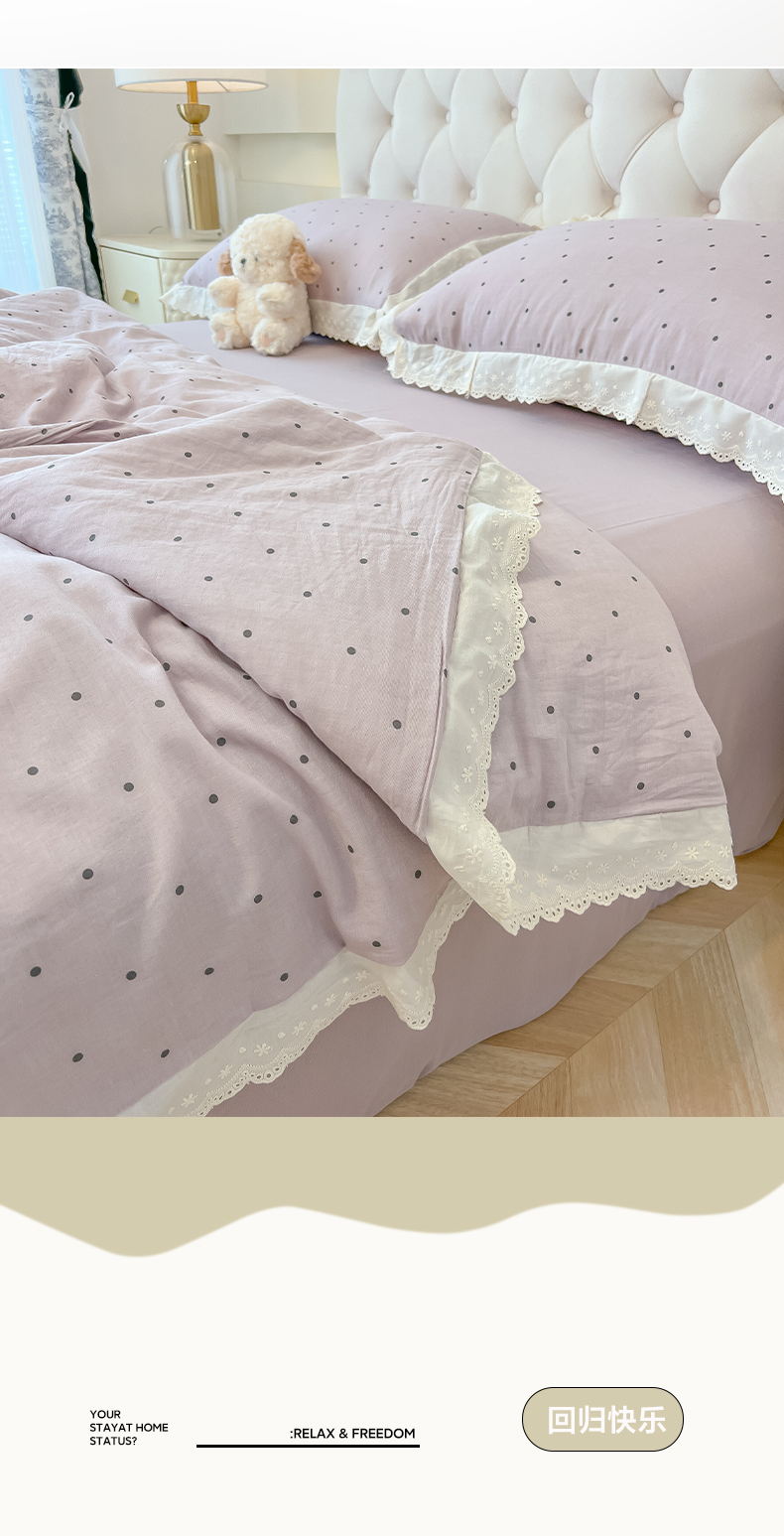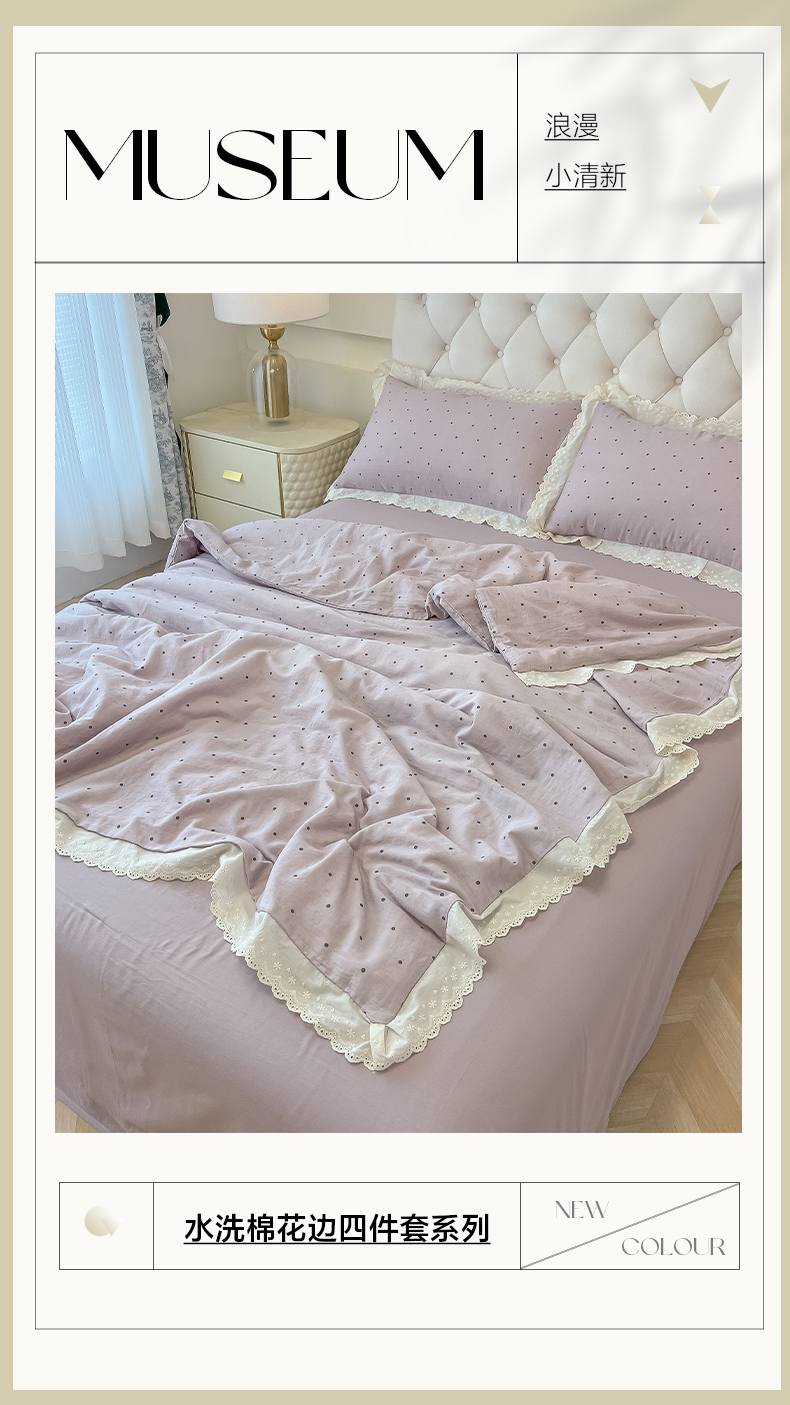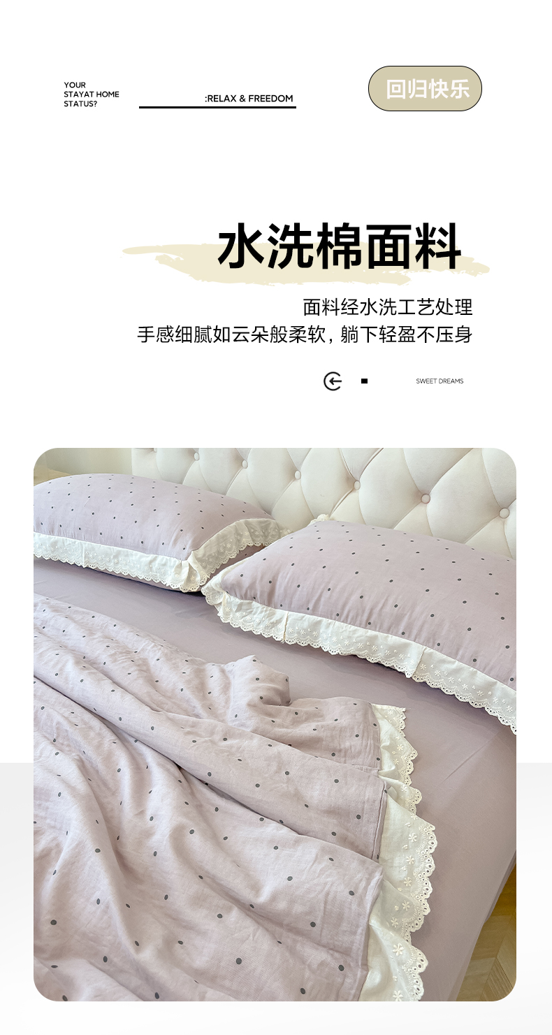 当前位置: 91家纺网 > 商品网购 > 床品套件 > 四件套 > 水洗棉四件套 > 盼季家纺 2025新款水洗棉蕾丝花边四件套 蕾丝小花边-芋泥点点