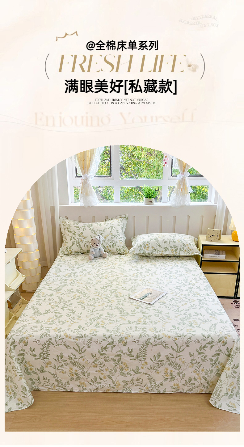 • 91家纺网 家纺一手货源 找家纺 大吉 2025新款亲肤舒适全棉纯棉喷气小清新印花系列单床单床单单件单品床单 花间
