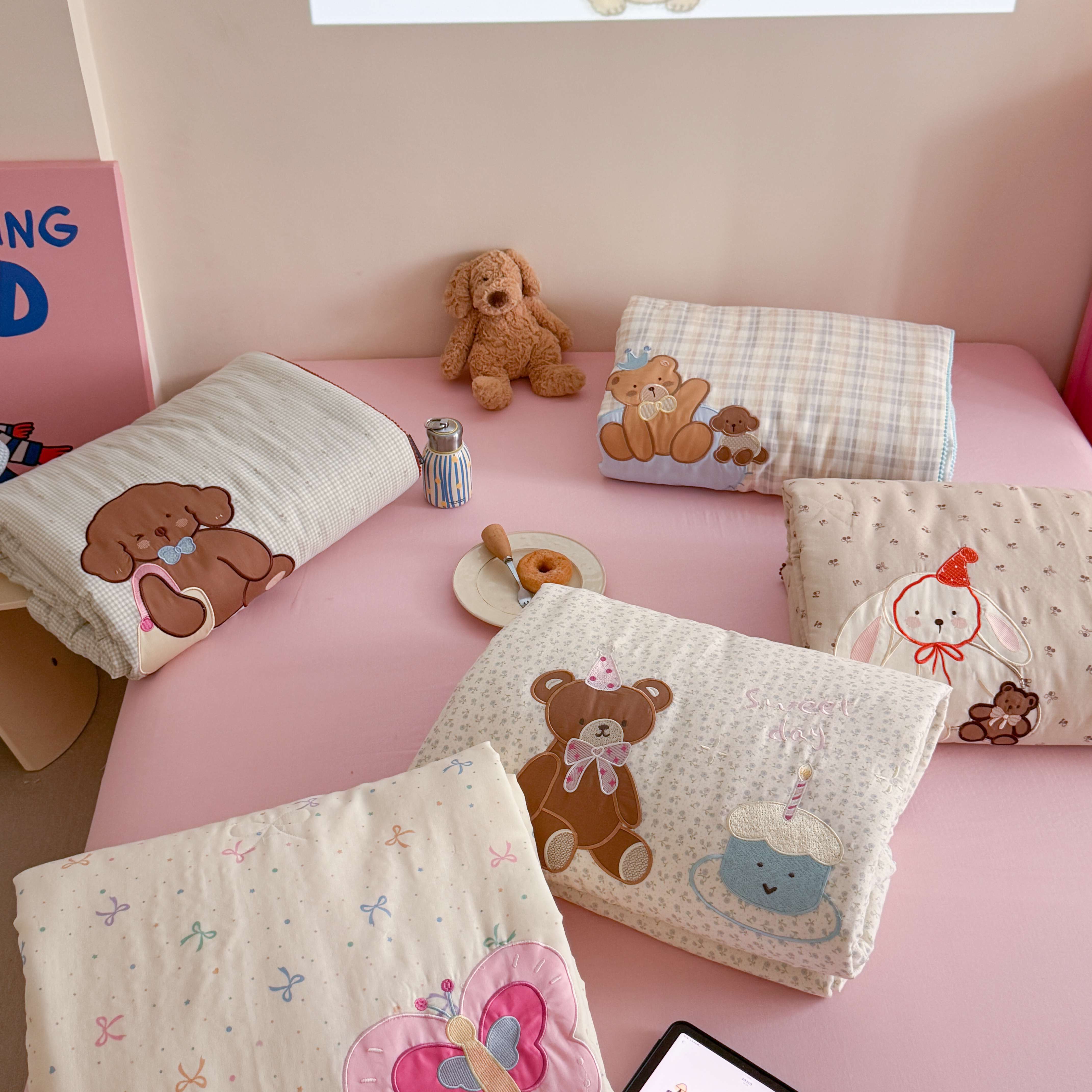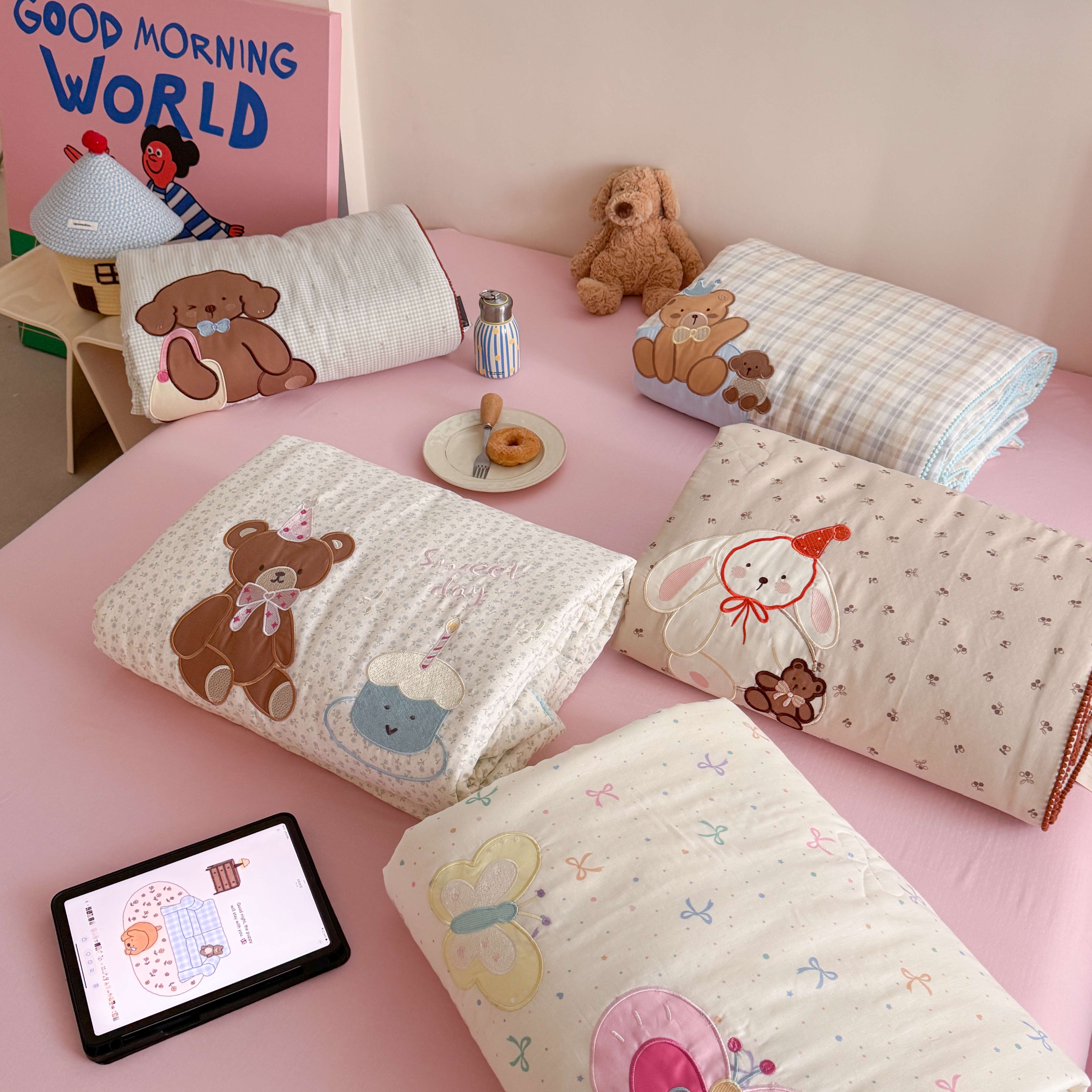 觅糖家纺 2025春夏新款全棉双层纱夏被夏凉被空调被 蛋糕熊