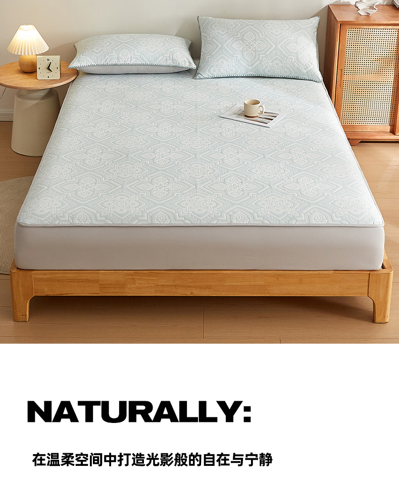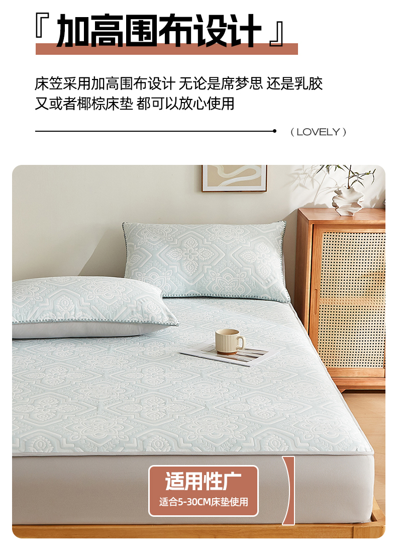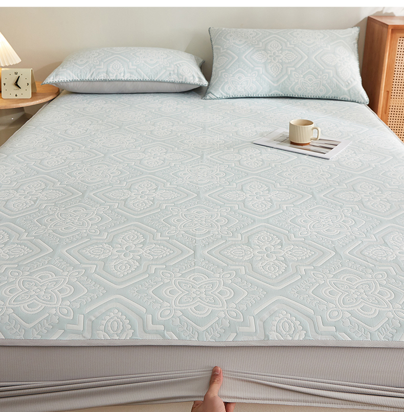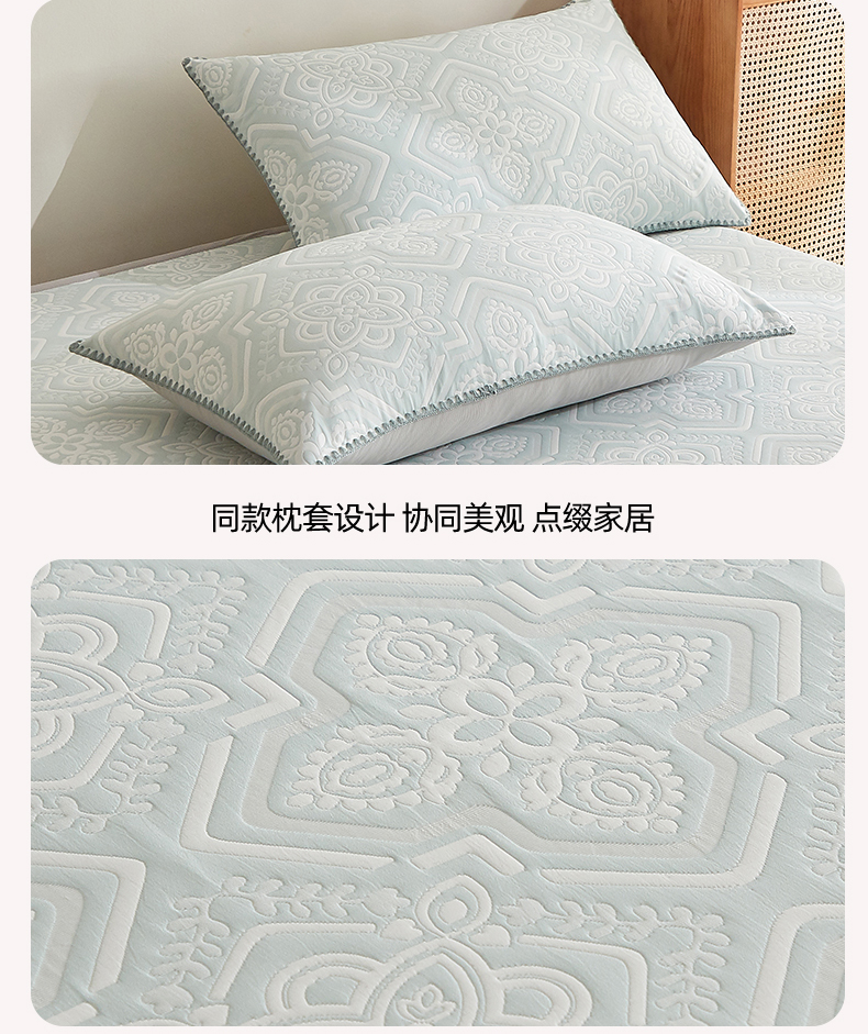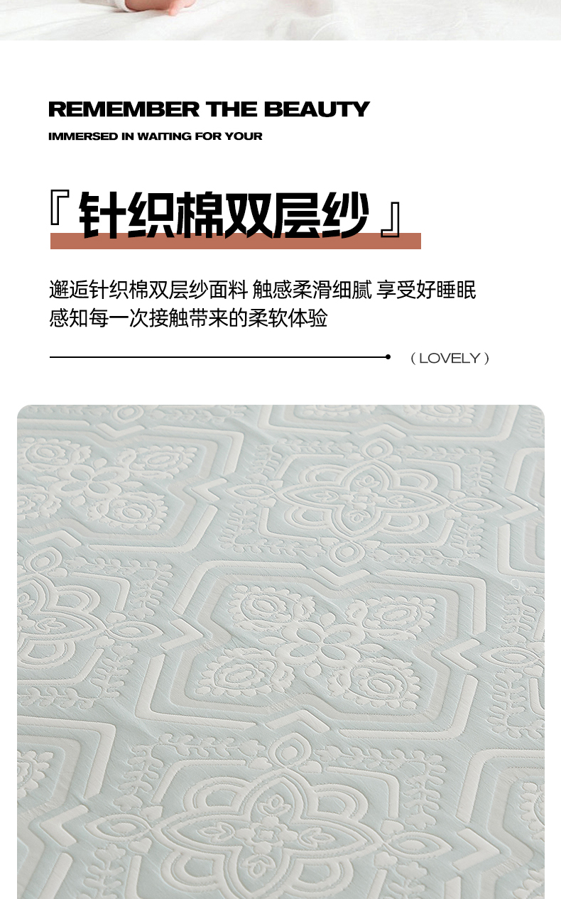 商品名称:梦镜家纺 2025新款A类针织双层纱床笠 花韵-天水碧