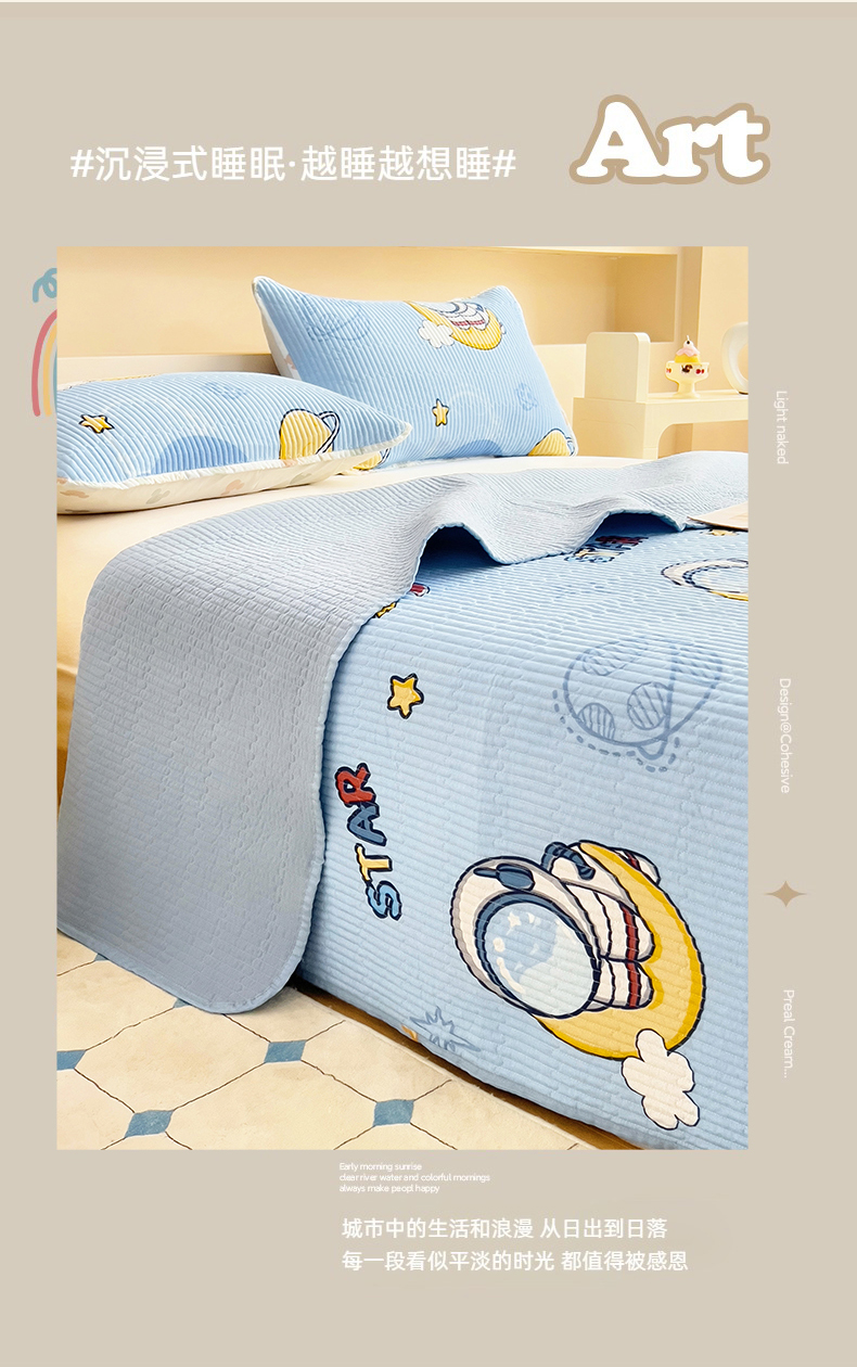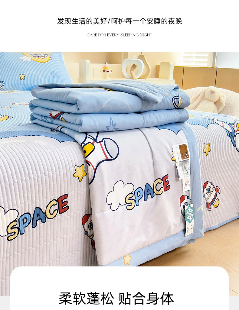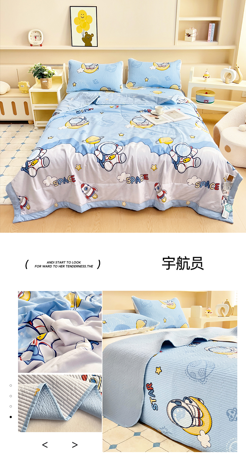 当前位置: 91家纺网 > 商品网购 > 床品套件 > 四件套 > 夏被四件套 > 亿莱鑫 2025新款全棉水洗夏凉被 空调被 被子夏被四件套床盖款 宇航员