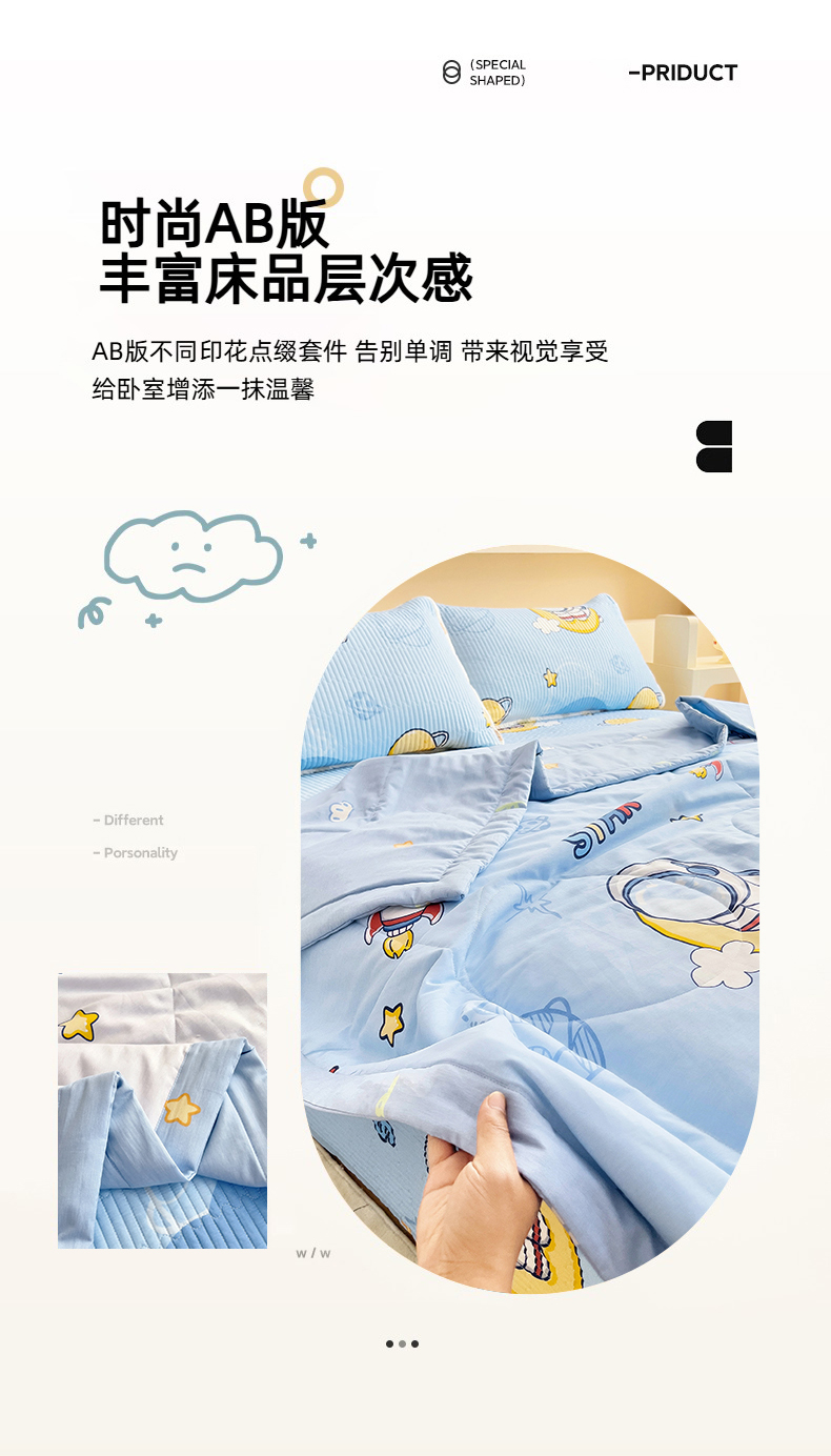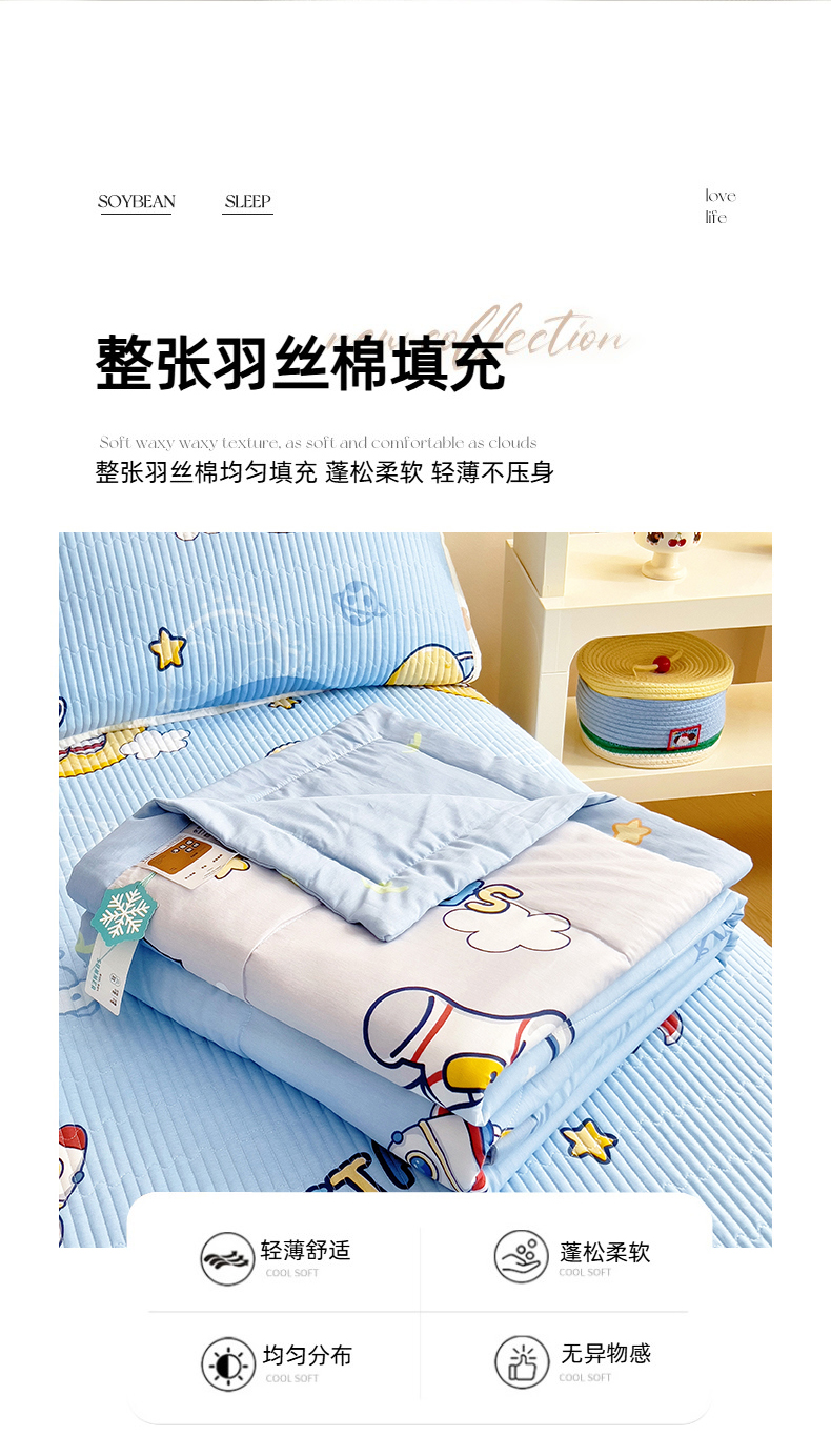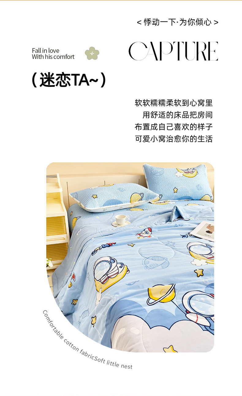 当前位置: 91家纺网 > 商品网购 > 床品套件 > 四件套 > 夏被四件套 > 亿莱鑫 2025新款全棉水洗夏凉被 空调被 被子夏被四件套床盖款 宇航员