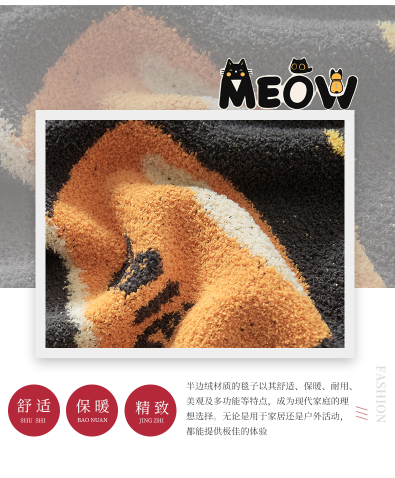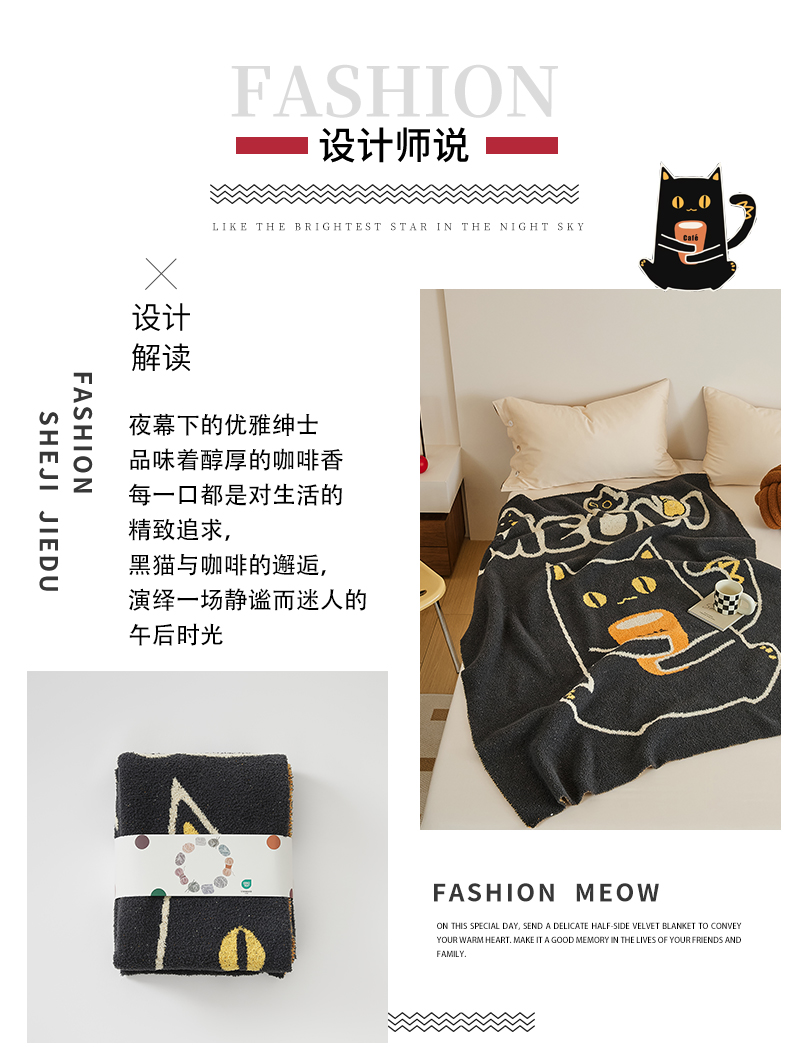 商品名称:暖绵绵2025新款半边绒涤纶混纺毯子抱枕套 安赛猫
