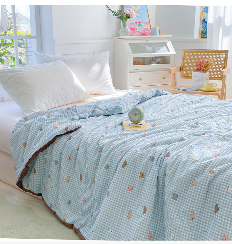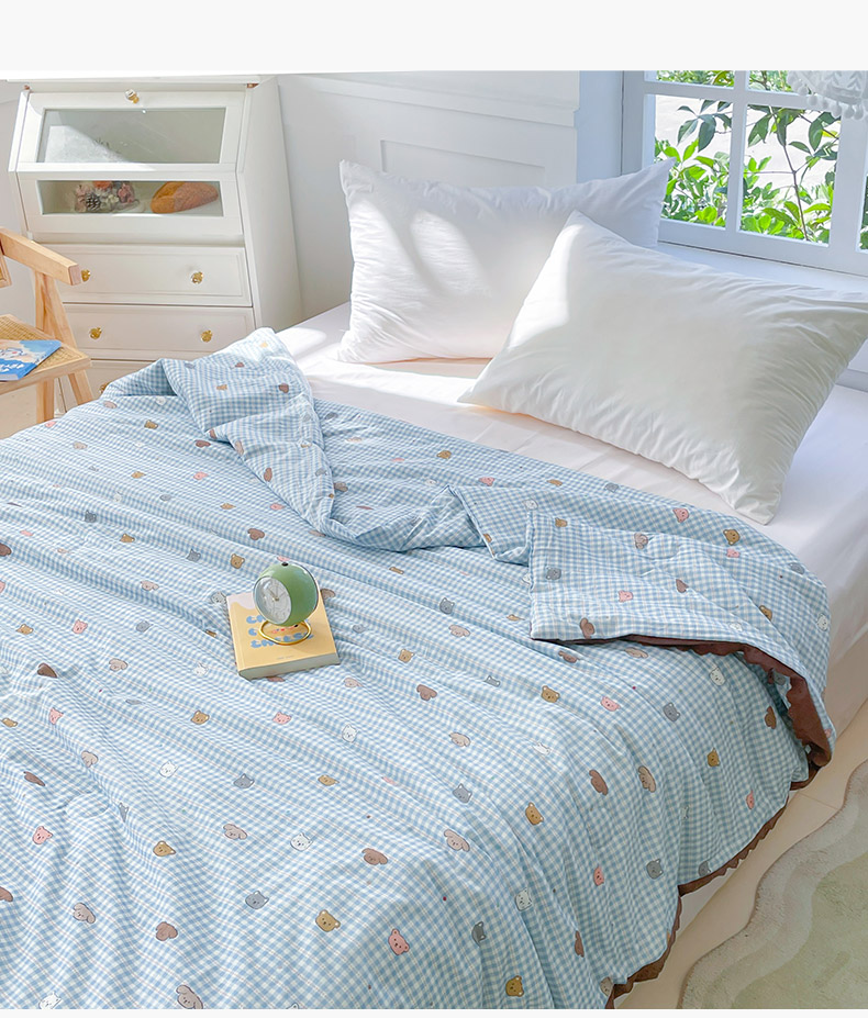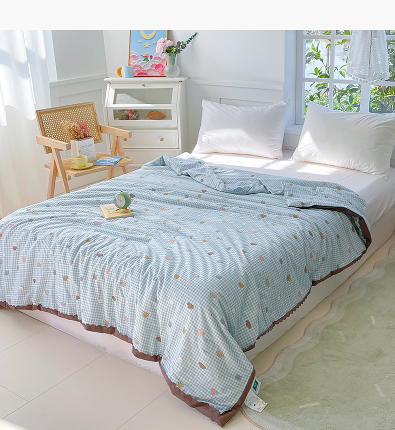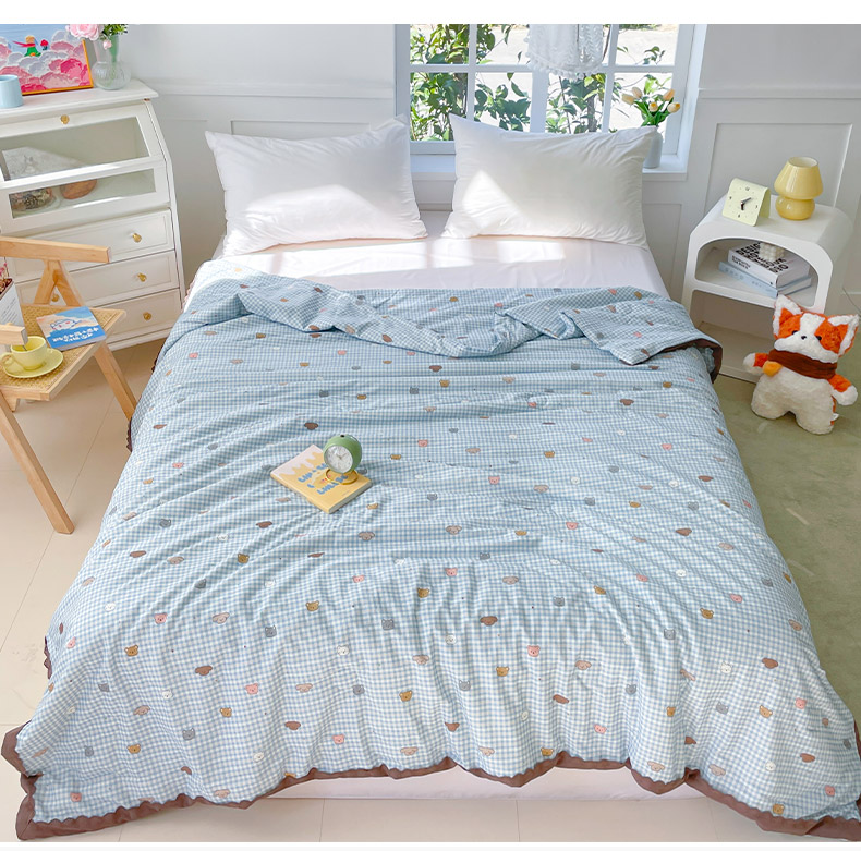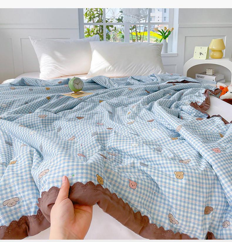 2025新款全棉60支单层纱花边夏被 蓝格猫