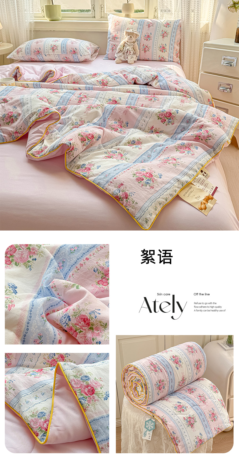 (总)丝芙妮家居(原乐视家纺) 2024新款A类色织水洗棉新疆棉花夏被,可颂咖,洛川棕,梦田-绿,暮落-绿,暮落-米黄,暮落-杏,暮落-粉