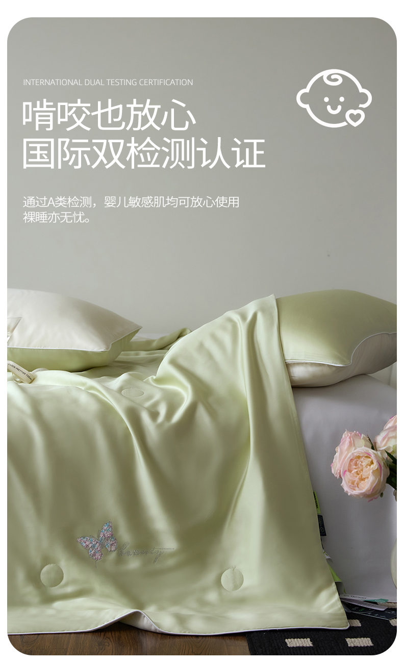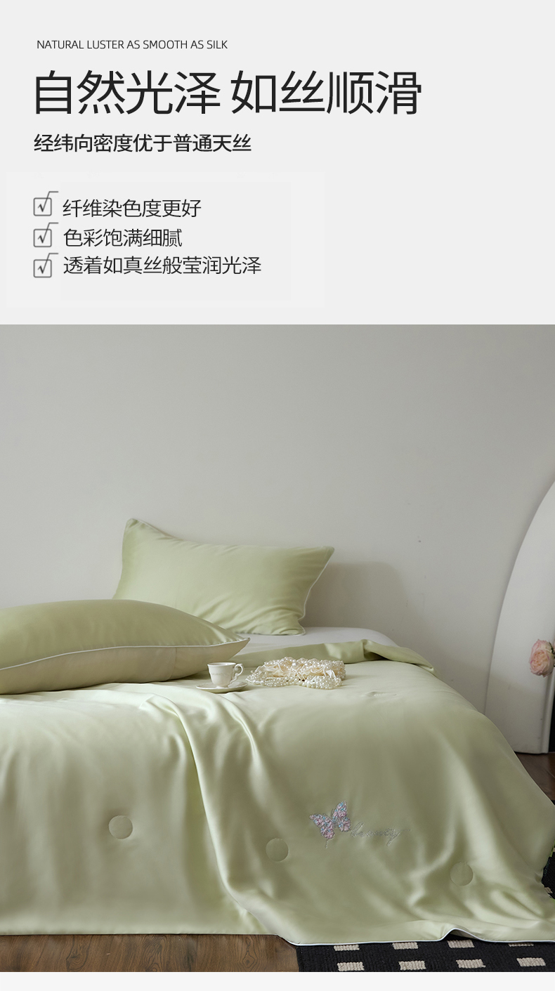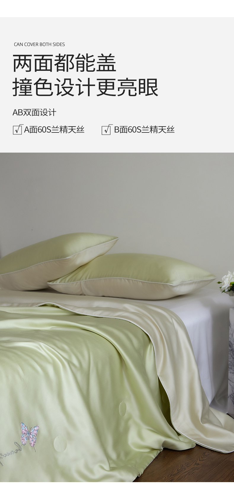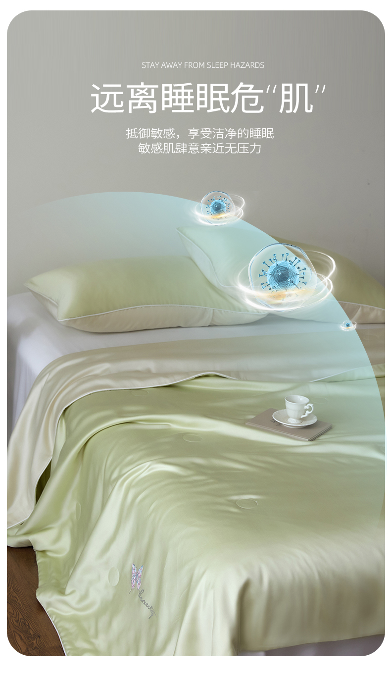 商品名称:头等舱 2025新款60SA类兰精天丝净植力纯色(抗菌 防螨 低至敏等)夏被(配送包装) 艾绿
