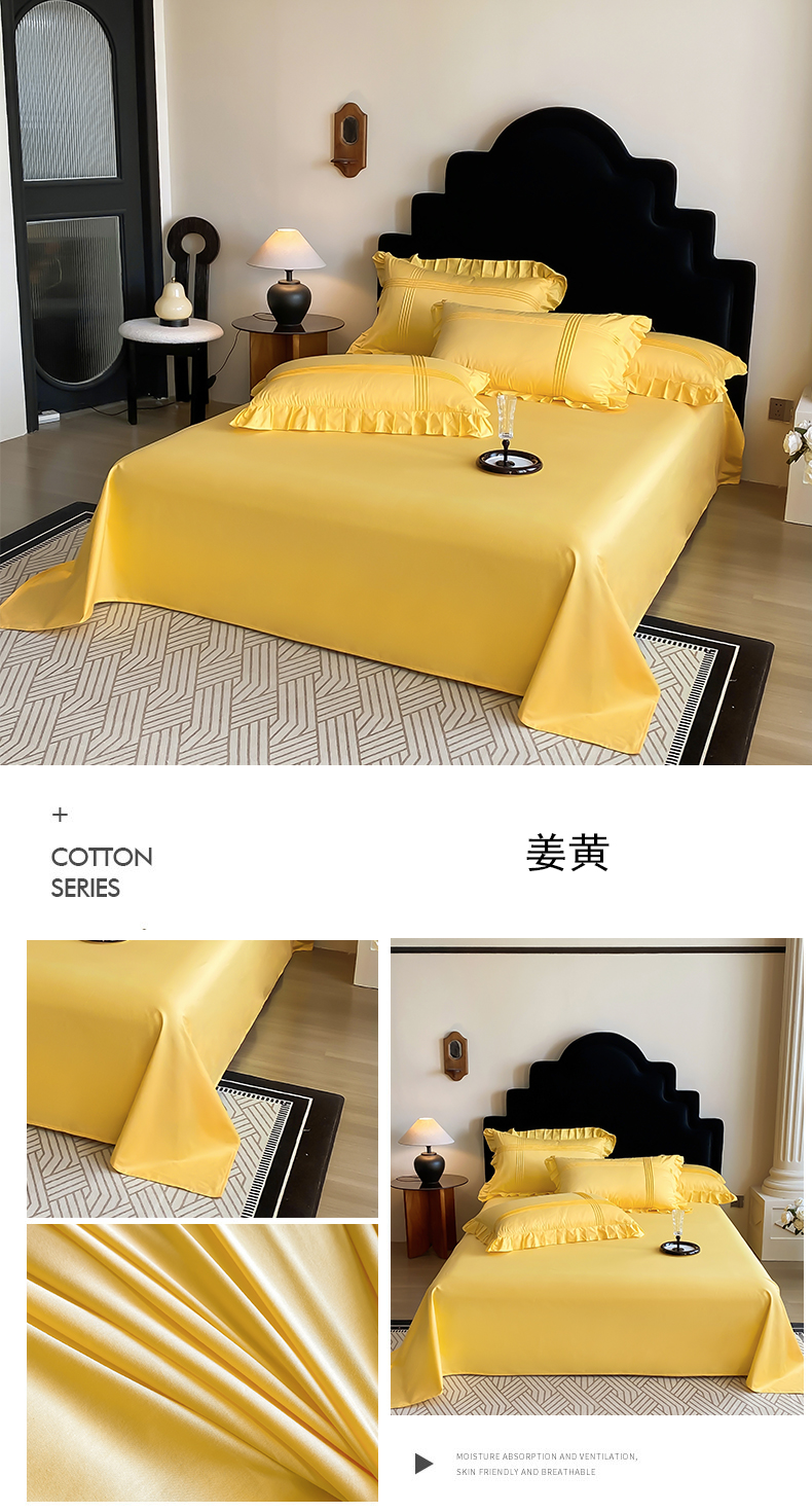 (总)花香四季家纺 2025新款A类纯棉母婴级全棉13376床单纯色单品系列,姜黄,魔芋绿,圣洁白,天空蓝