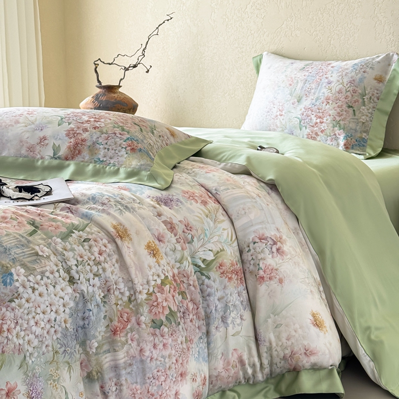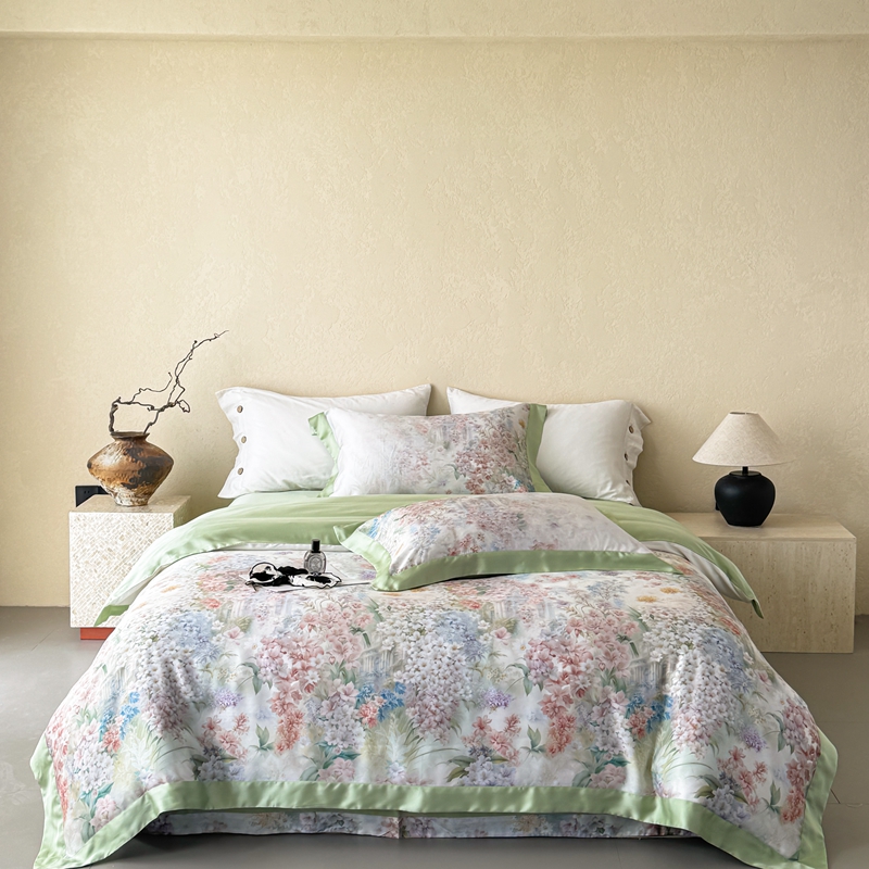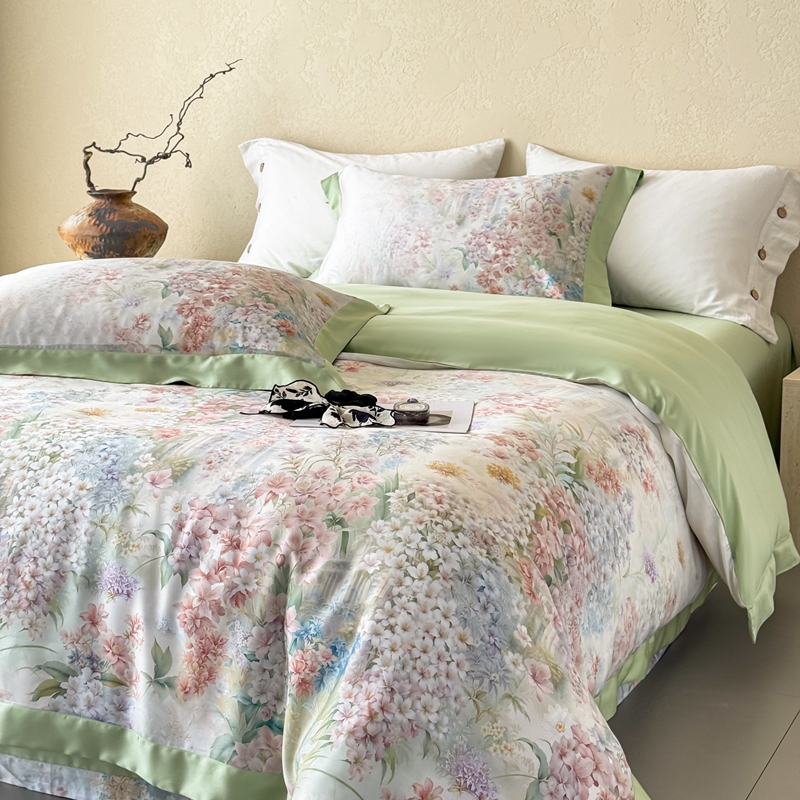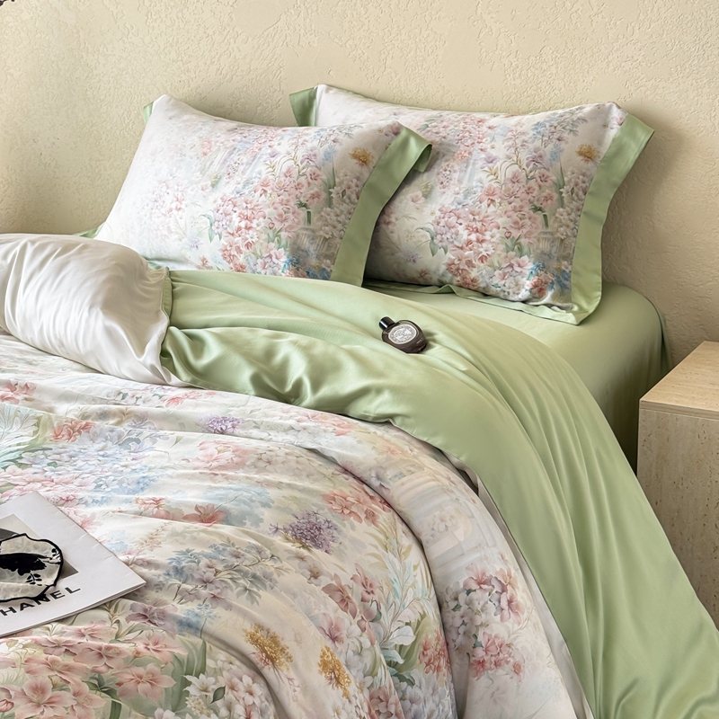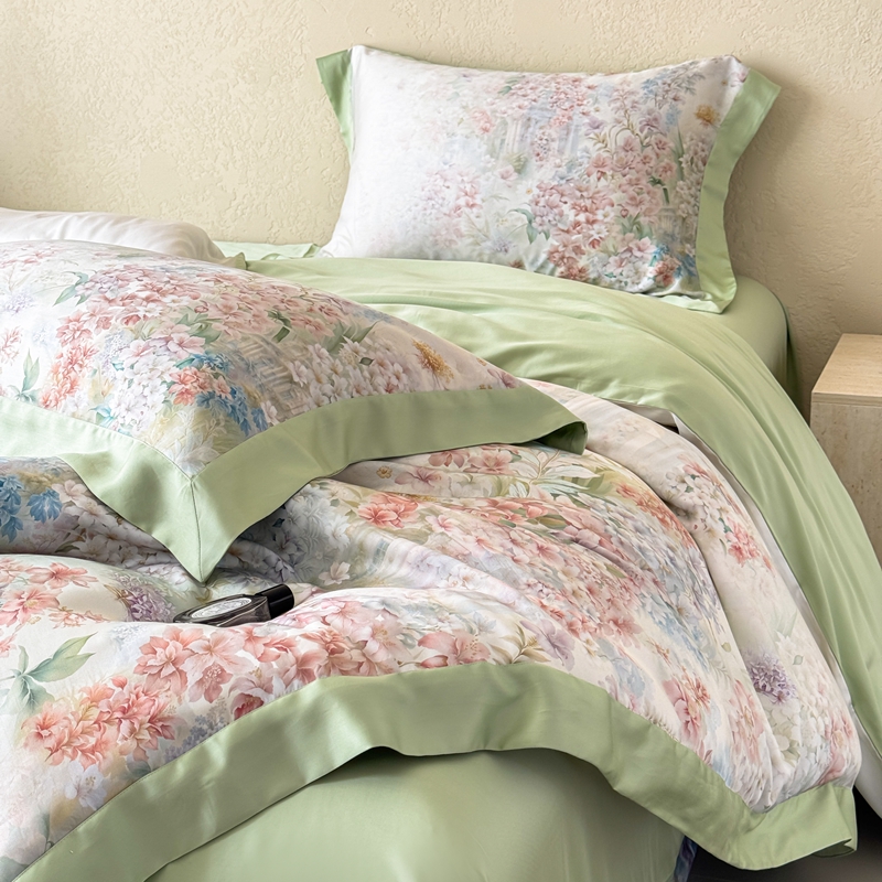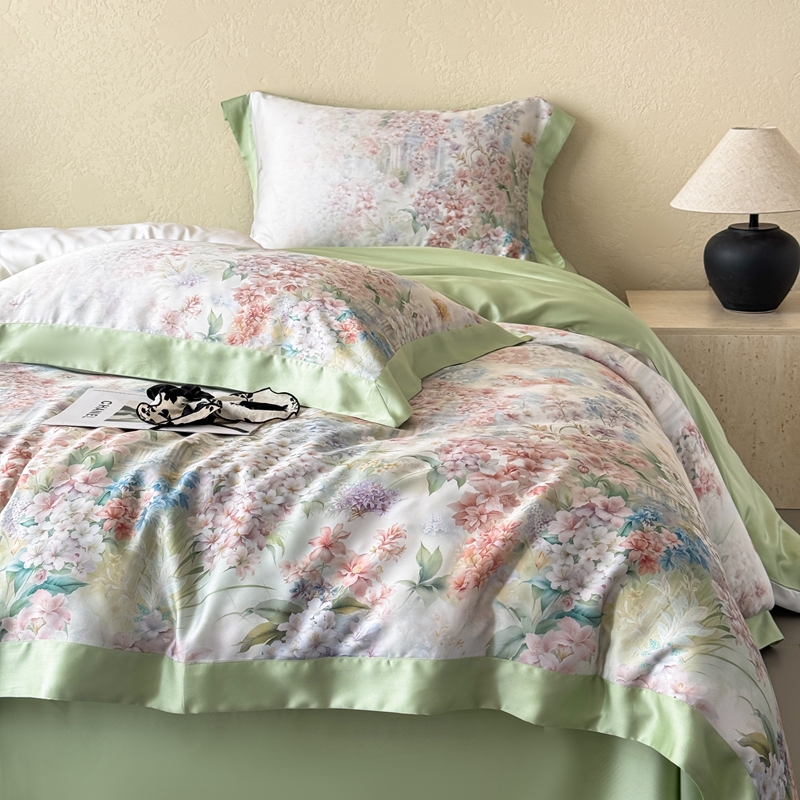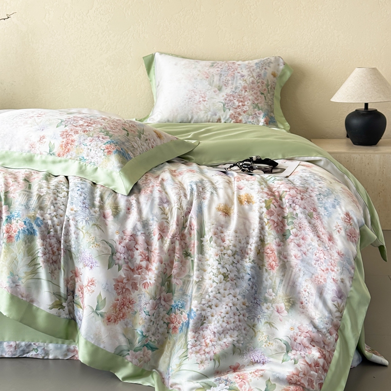商品名称:若未2025新款玲珑 50S兰精天丝平网活性数码印花四件套 玲珑 控价 券后不低于 368 玲珑 绿