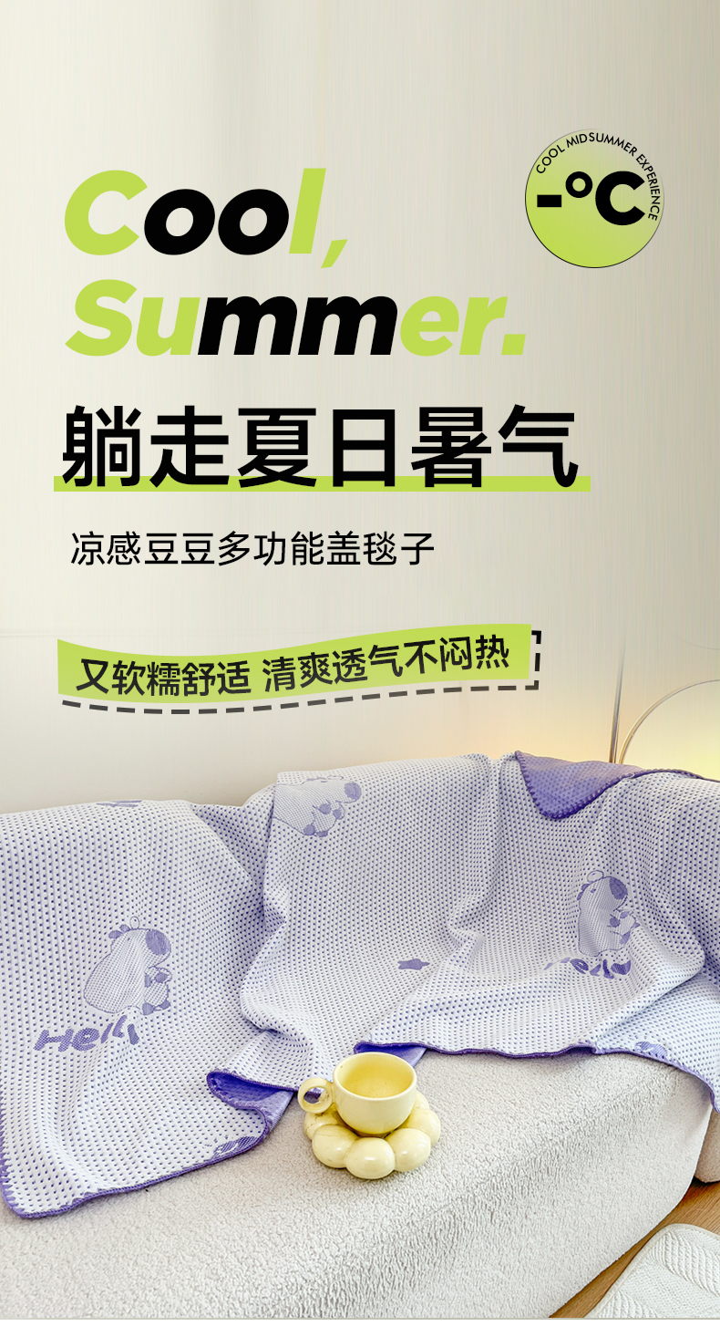 (总)芙绣家纺 2025新款A类凉感冰豆豆多功能盖毯,蓝色,绿色,紫色