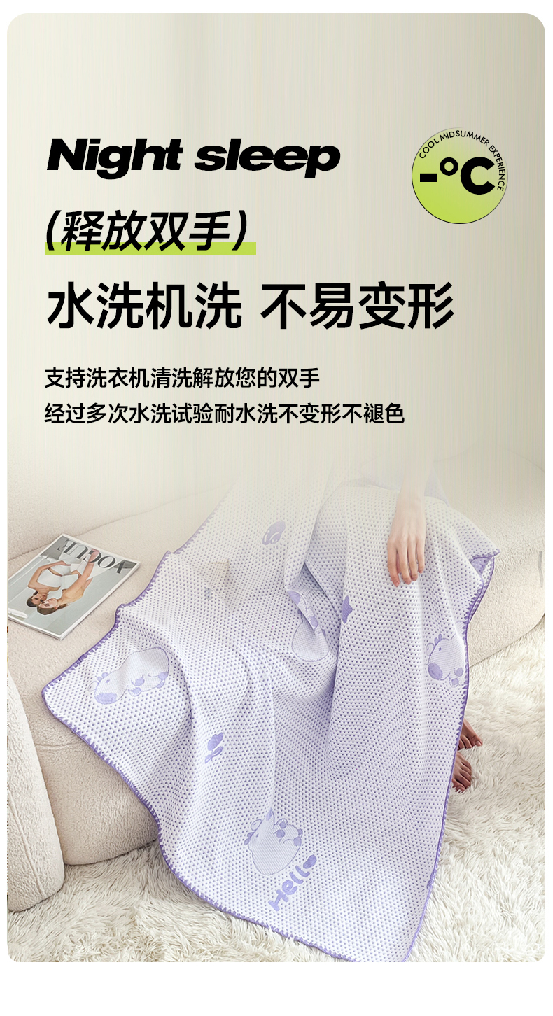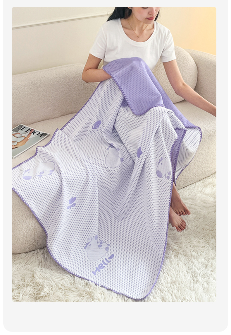芙绣家纺 2025新款A类凉感冰豆豆多功能盖毯 紫色