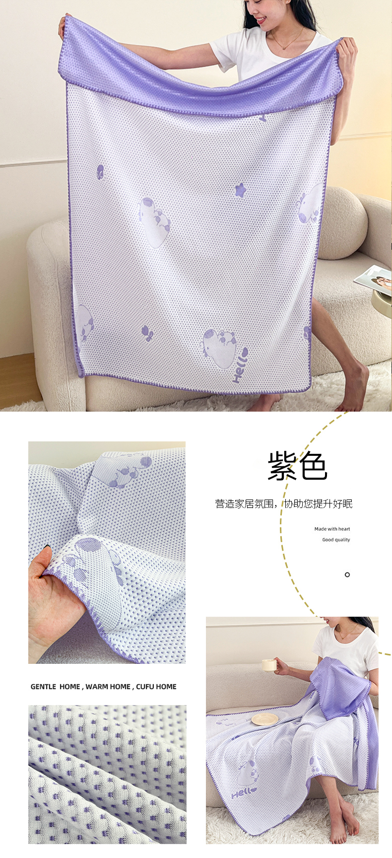 商品名称:芙绣家纺 2025新款A类凉感冰豆豆多功能盖毯 紫色