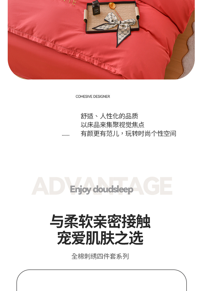 当前位置: 91家纺网 > 商品网购 > 床品套件 > 四件套 > 全棉普通四件套 > 宇彬家纺 2025新款直播热款13374全棉母婴级绣花字母款被套床单纯色重工清新四件套贡缎新疆长绒 Min-宝石红