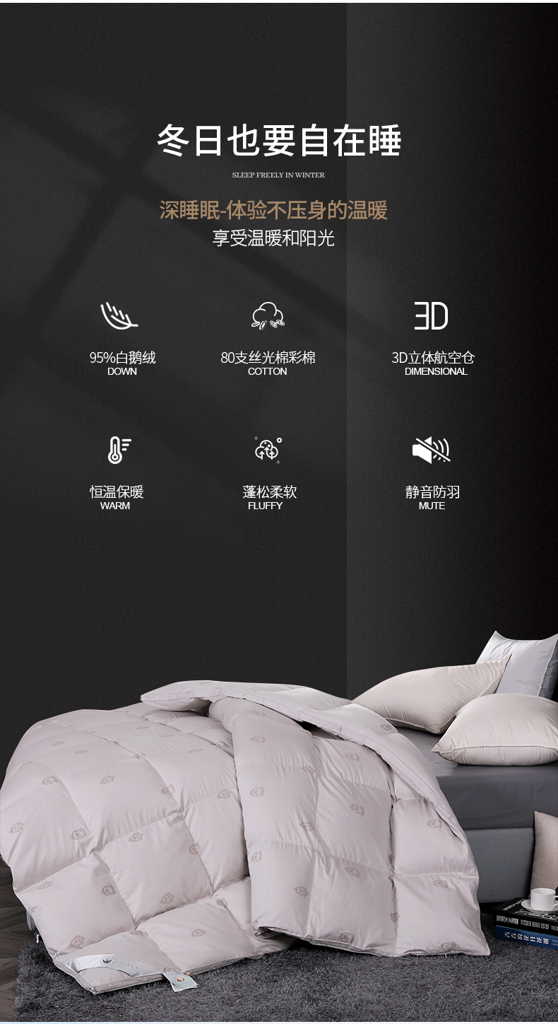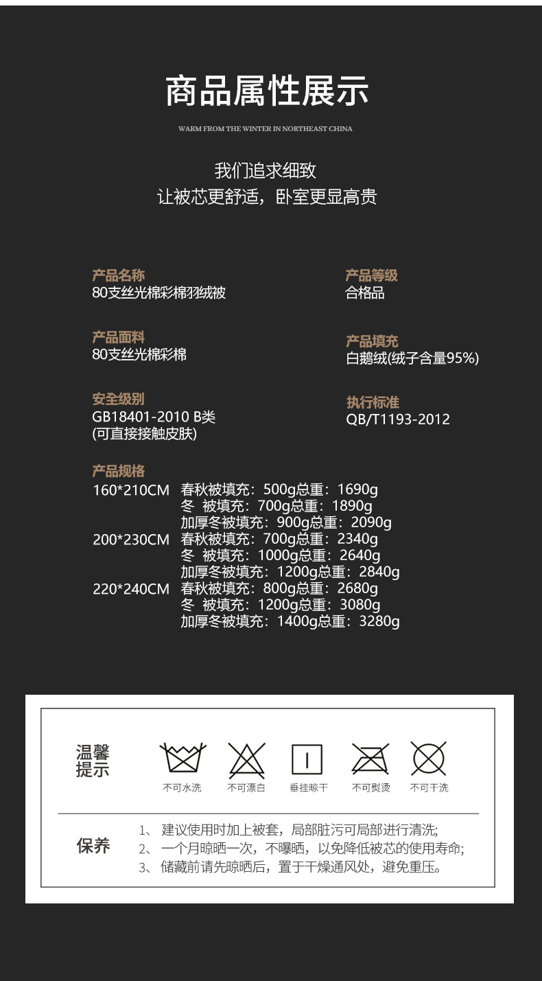 95白鹅绒被-200x230cm填充1200g加厚冬被