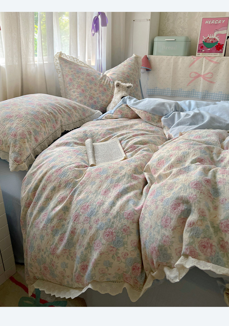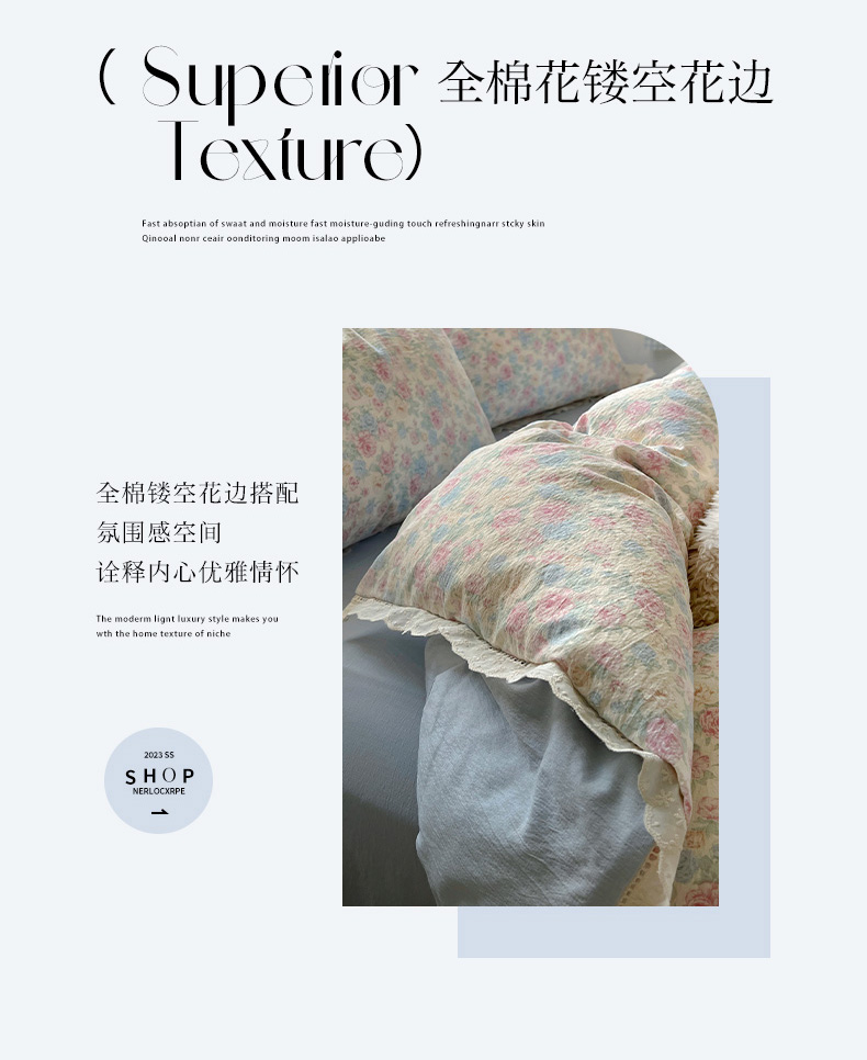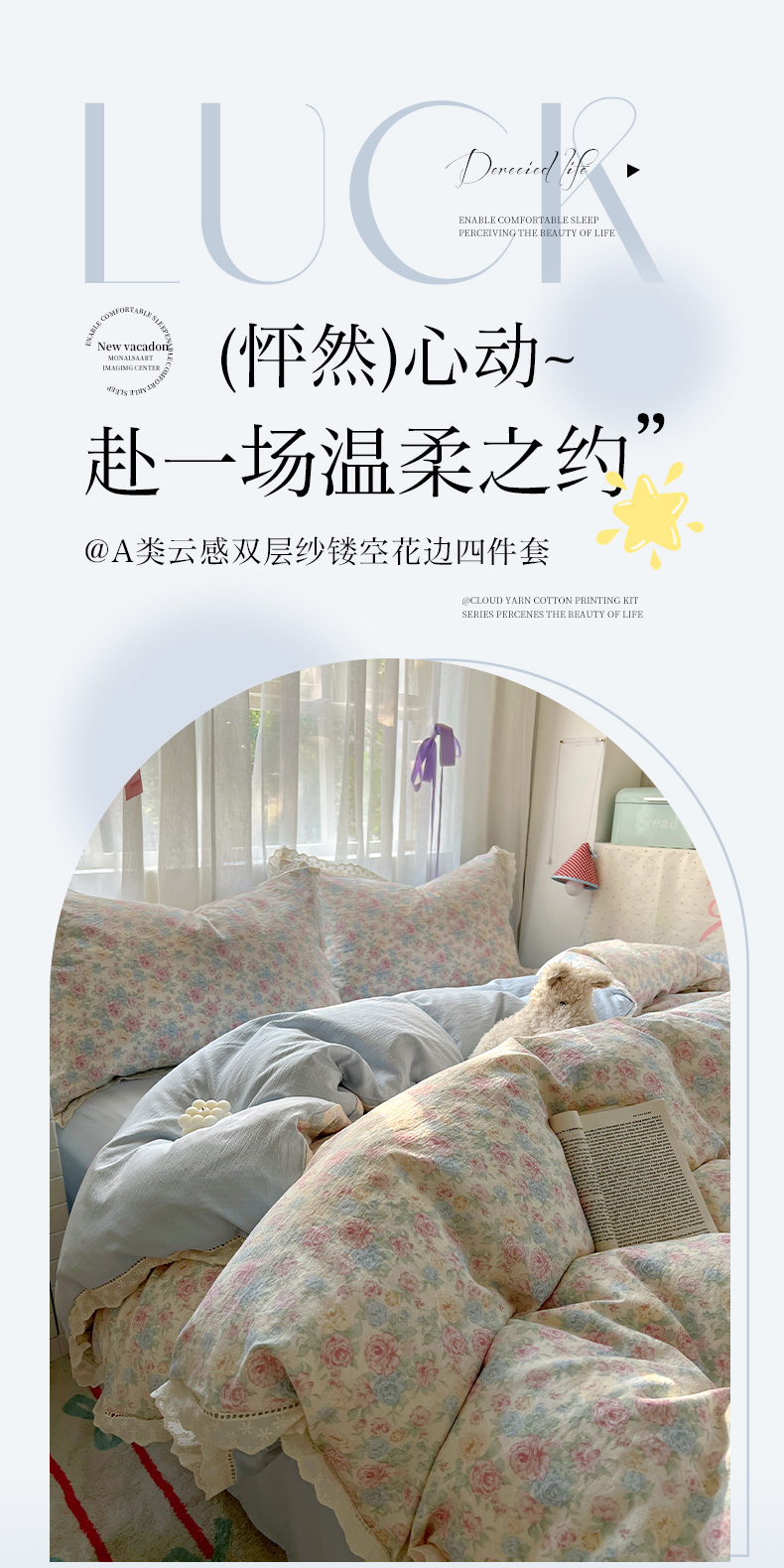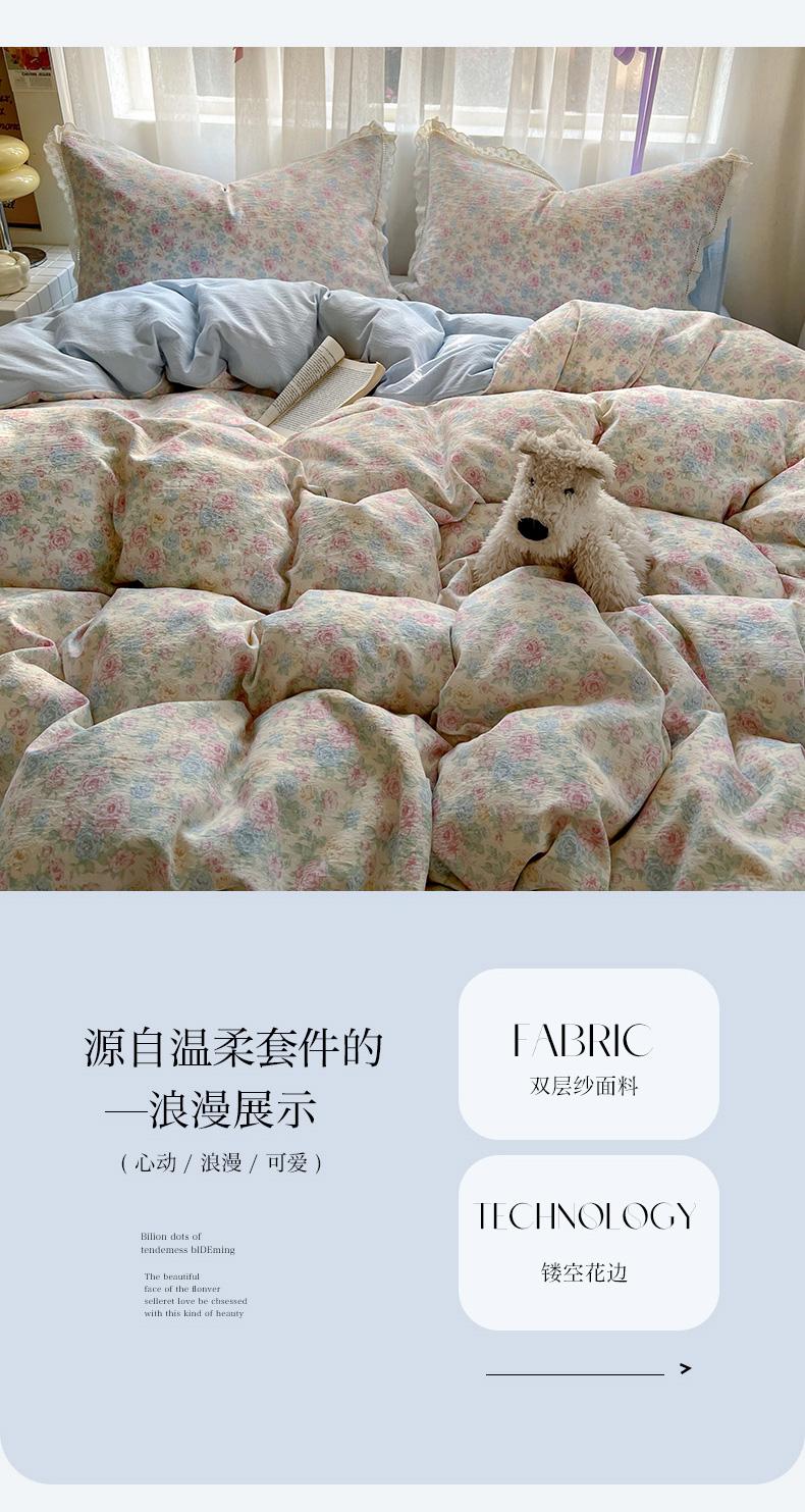 当前位置: 91家纺网 > 商品网购 > 床品套件 > 四件套 > 双层纱四件套 > 罗亿家纺 2025新款云感双层纱全棉镂空花边四件套(提供买家秀) 童话星岛