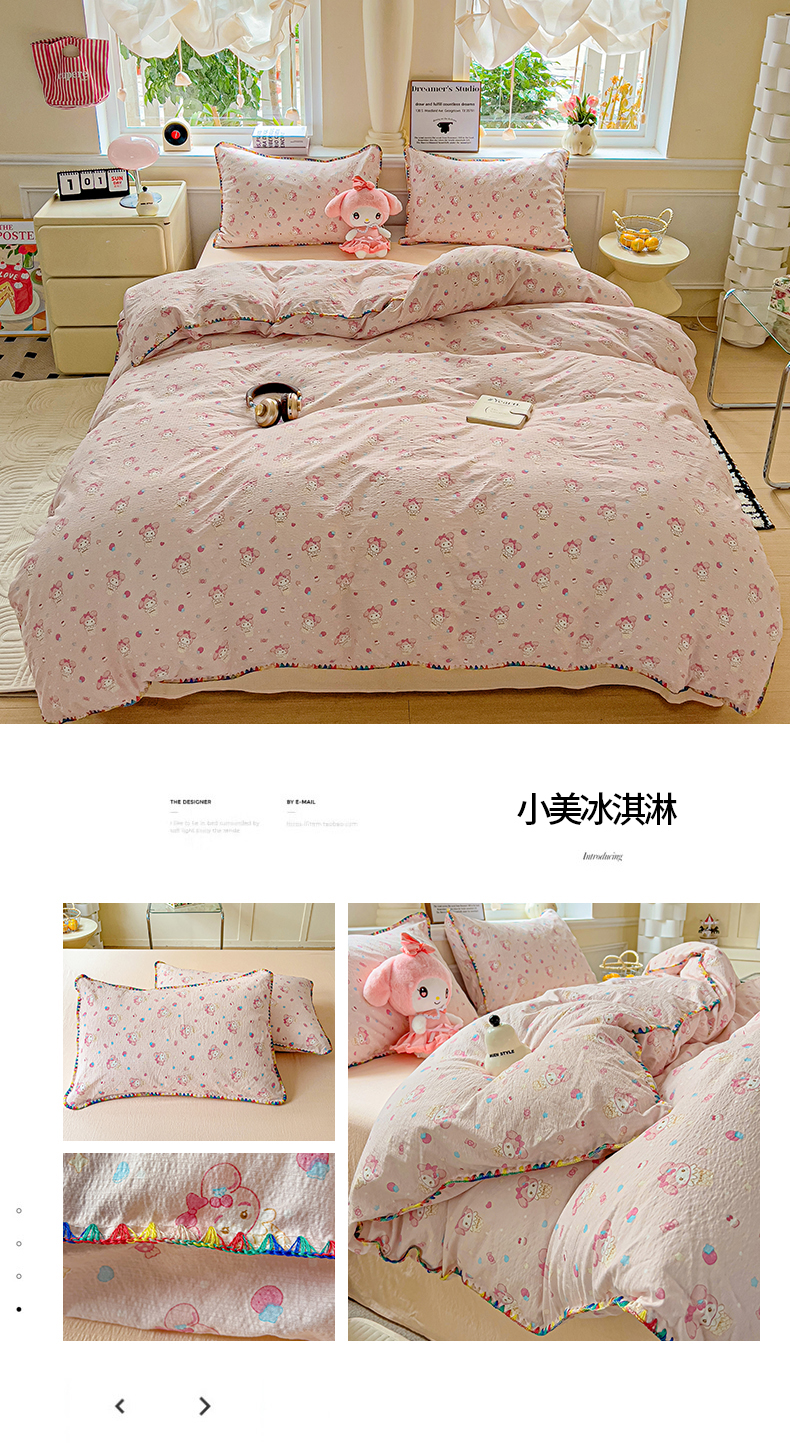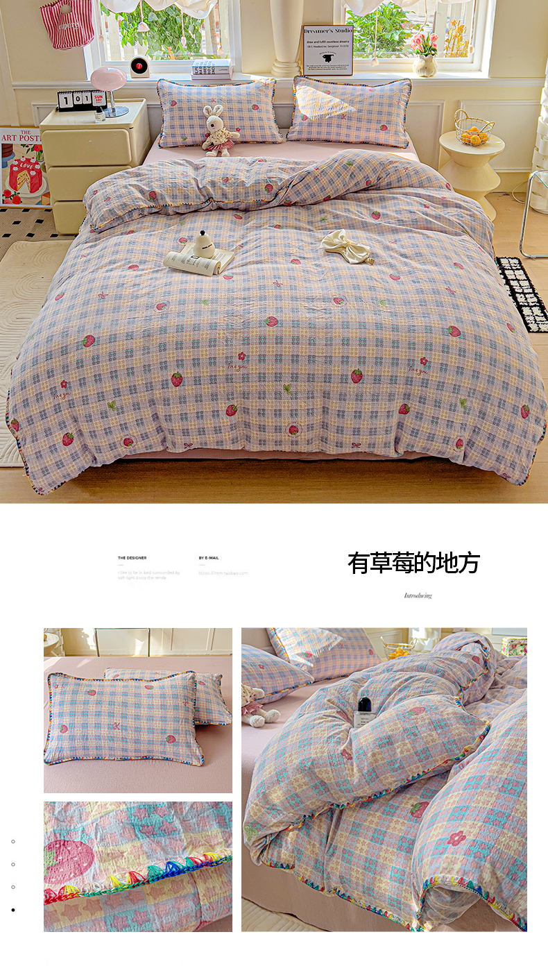 当前位置: 91家纺网 > 商品网购 > 床品套件 > 四件套 > 双层纱四件套 > Mata蔓塔家 2025春夏新款云感针织双层纱彩色贝壳边四件套 相思-蓝