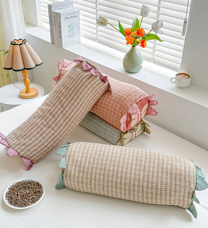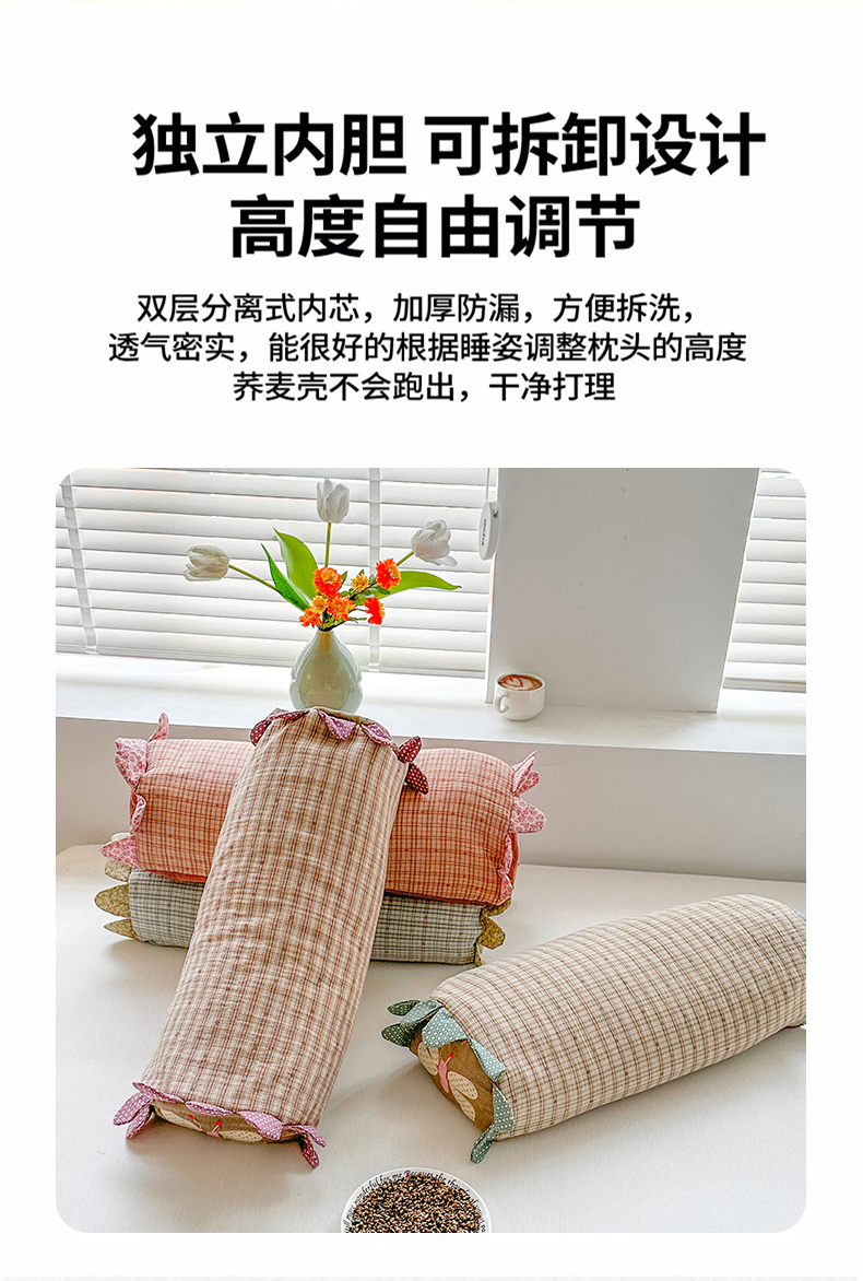 商品名称:金牛枕芯 2025新款花蝴蝶荞麦枕头全棉双层纱儿童枕芯学生护颈枕 蝴蝶花护颈枕-米色