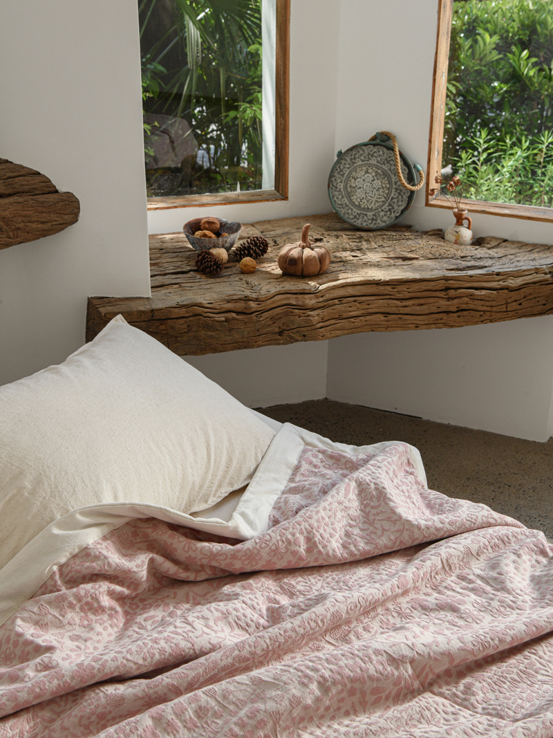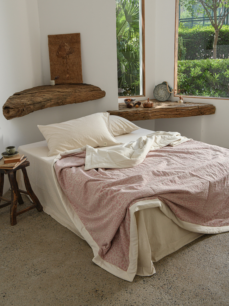 (总)简家居 2025新款亲肤舒适棉麻床盖三件套,棉麻提花