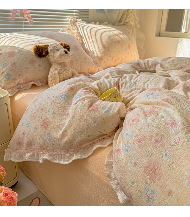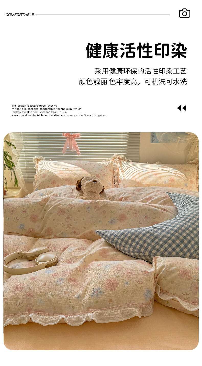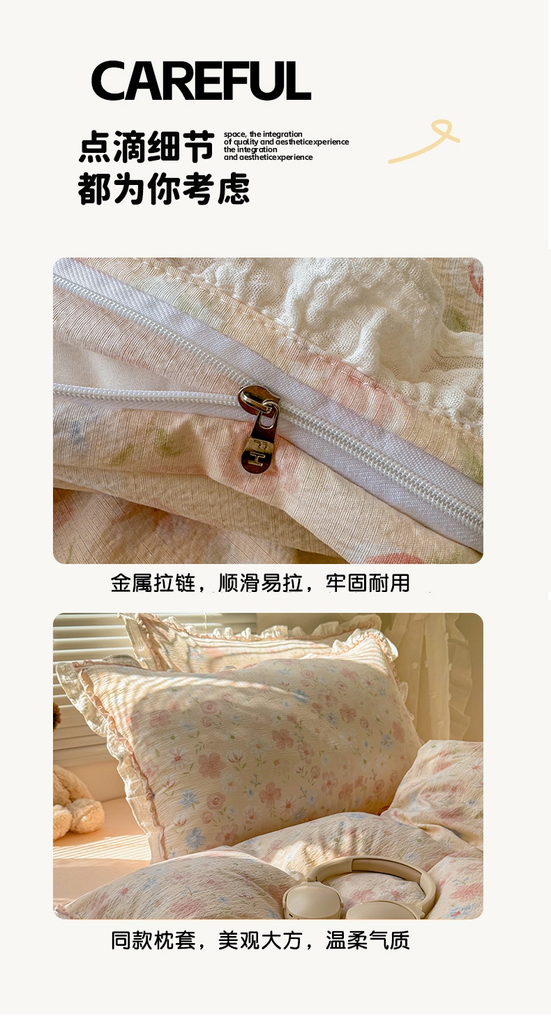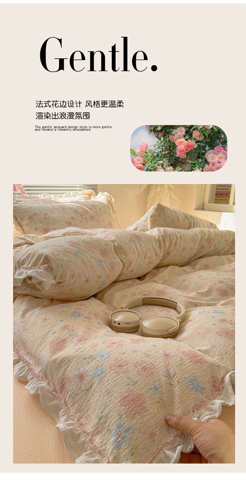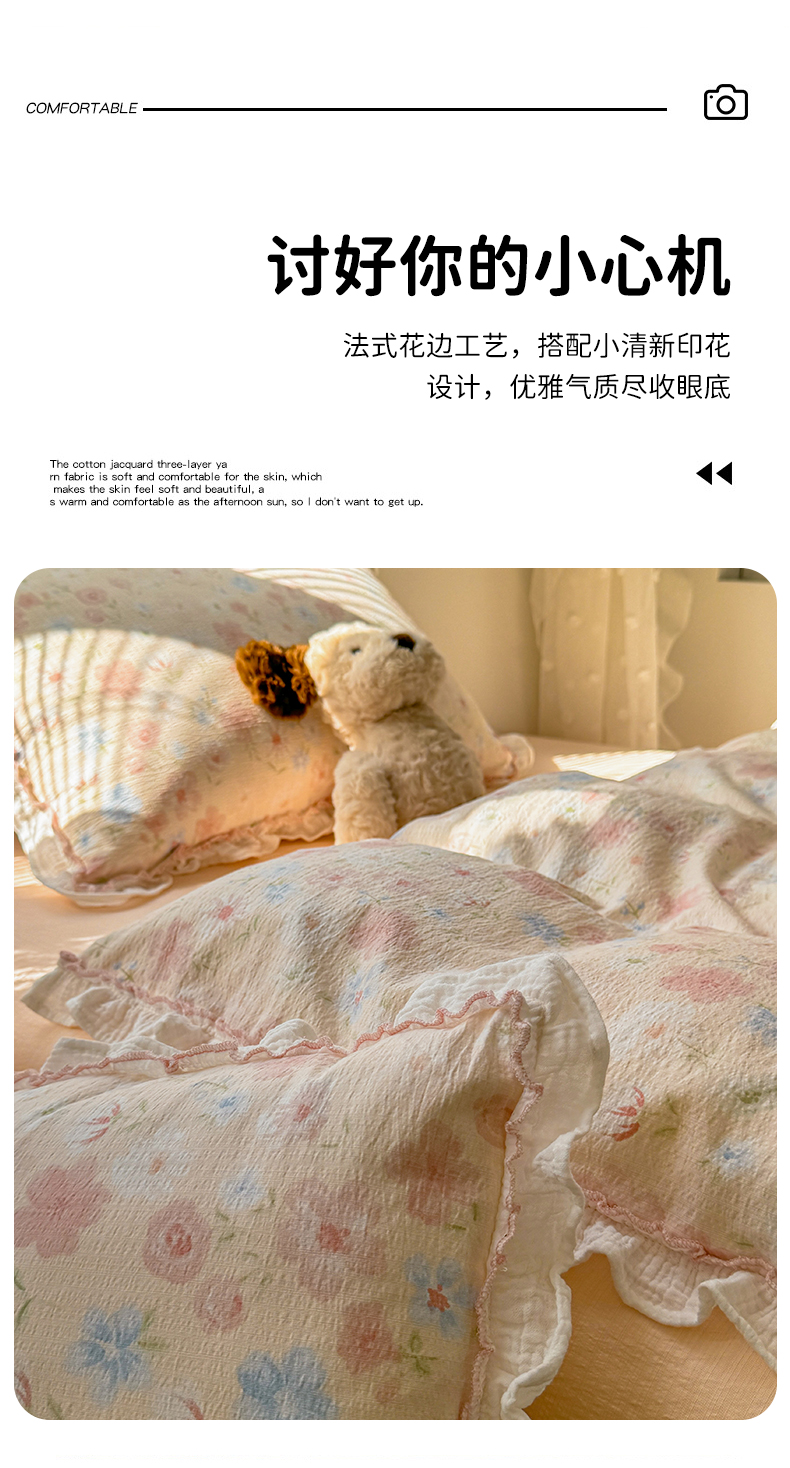 当前位置: 91家纺网 > 商品网购 > 床品套件 > 四件套 > 提花四件套 > 繁花家居 2025新款云感棉提花学生季超温柔小花边四件套 芳华