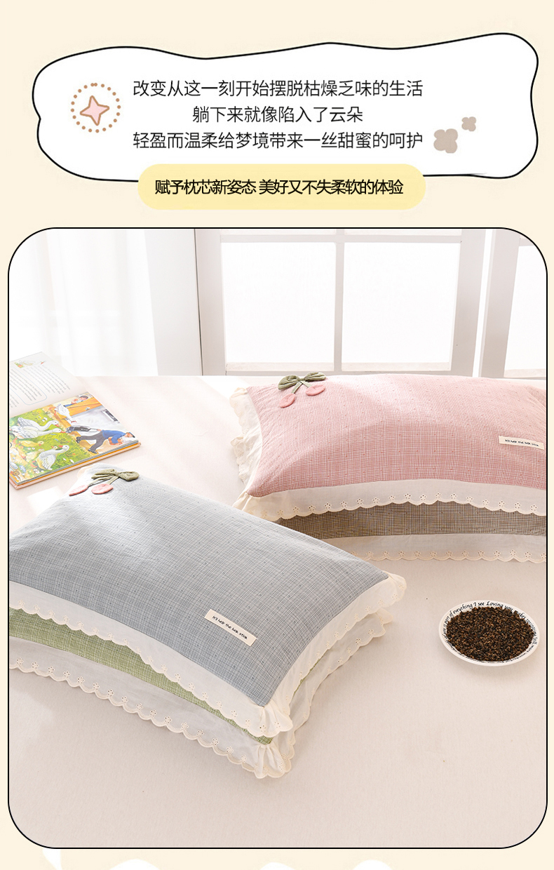当前位置: 91家纺网 > 商品网购 > 枕头/枕芯/保健枕/颈椎枕 > 梦莱家纺 2025新款小樱桃枕头全棉水洗棉小提花枕芯花边可拆卸学生儿童枕头 樱桃枕-蓝色 35x55cm/只-甜荞麦