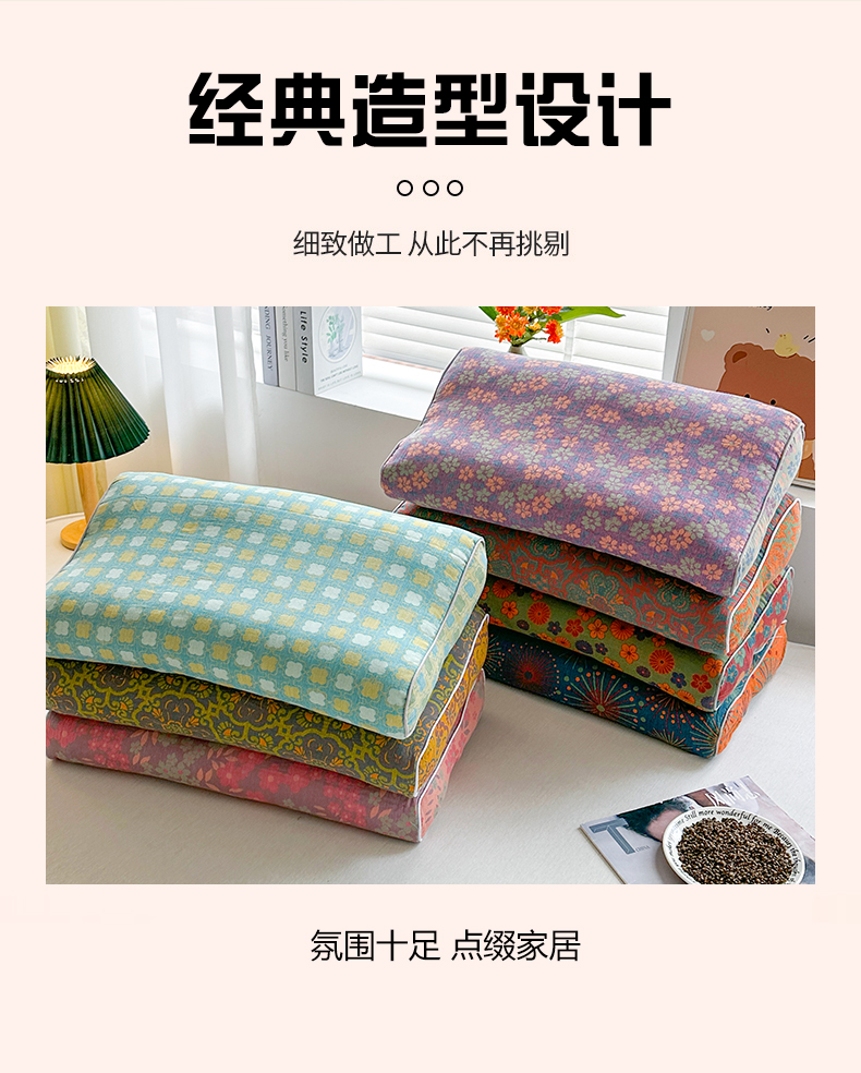 商品名称:梦莱家纺 2025新款全棉双层纱色织提花全荞麦枕牵引枕高低造型枕头枕芯 邂逅 30x50cm/只-甜荞麦