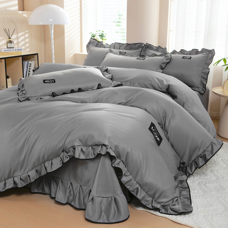 (总)找底底家纺 2024新款水洗真丝床裙款夏被四件套床品套件,宝石蓝,深韵灰,水绿色,深紫色,素颜兰,豆沙色,晴空白