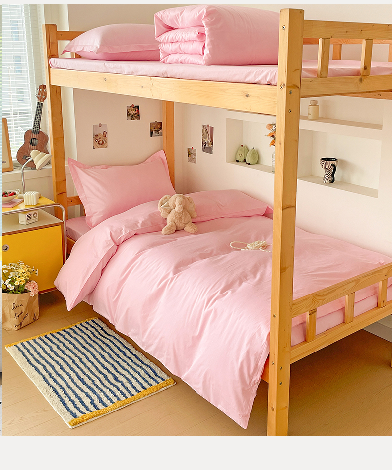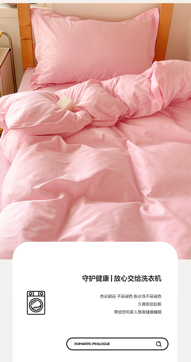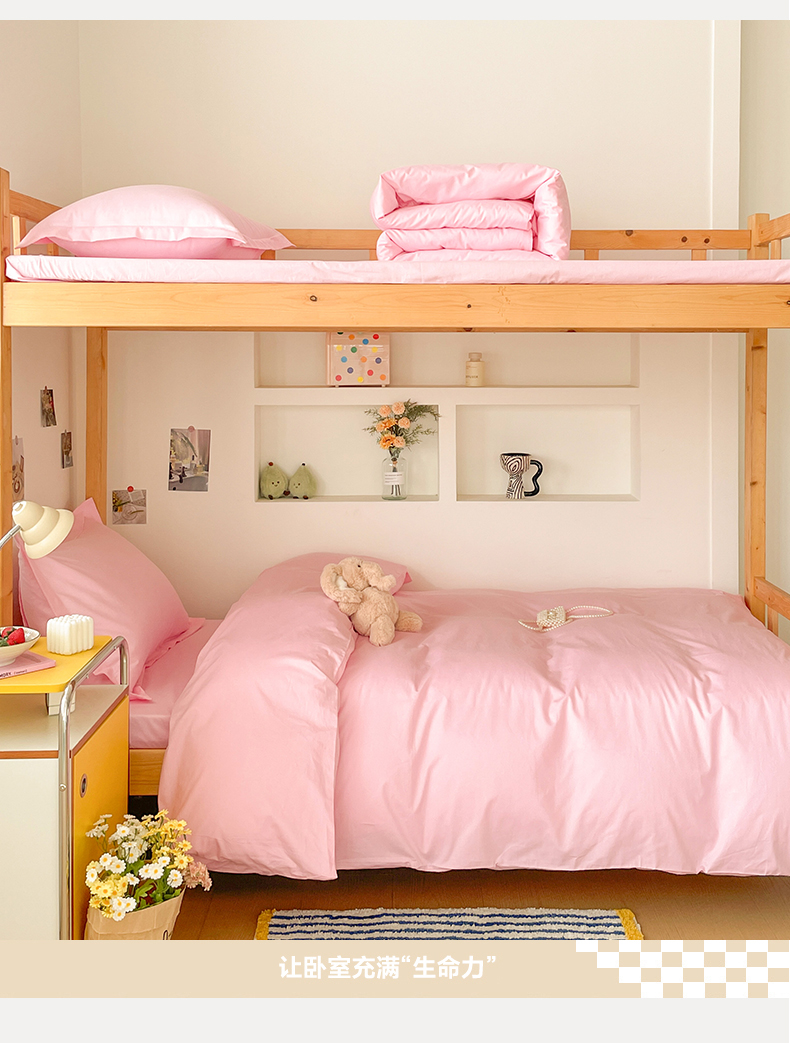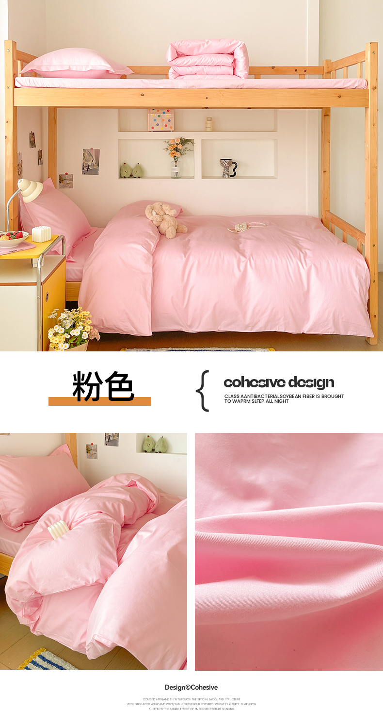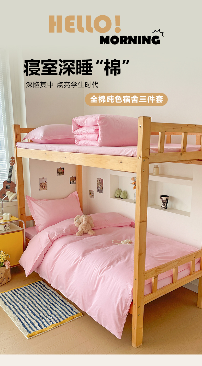 商品名称:恩泽家纺 2025新款全棉双拼学生宿舍三件套 粉色