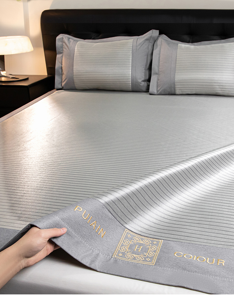 当前位置: 91家纺网 > 商品网购 > 床上用品 > 凉席 > 冰丝席 > 莱家富 2025新款A类凉感冰丝藤凉席-英文条纹席 宝石蓝
