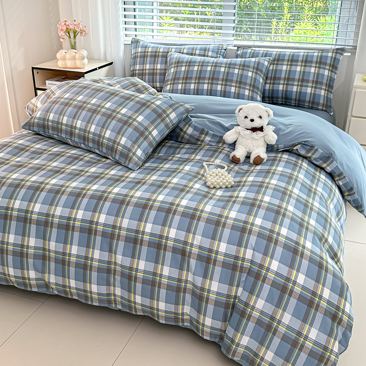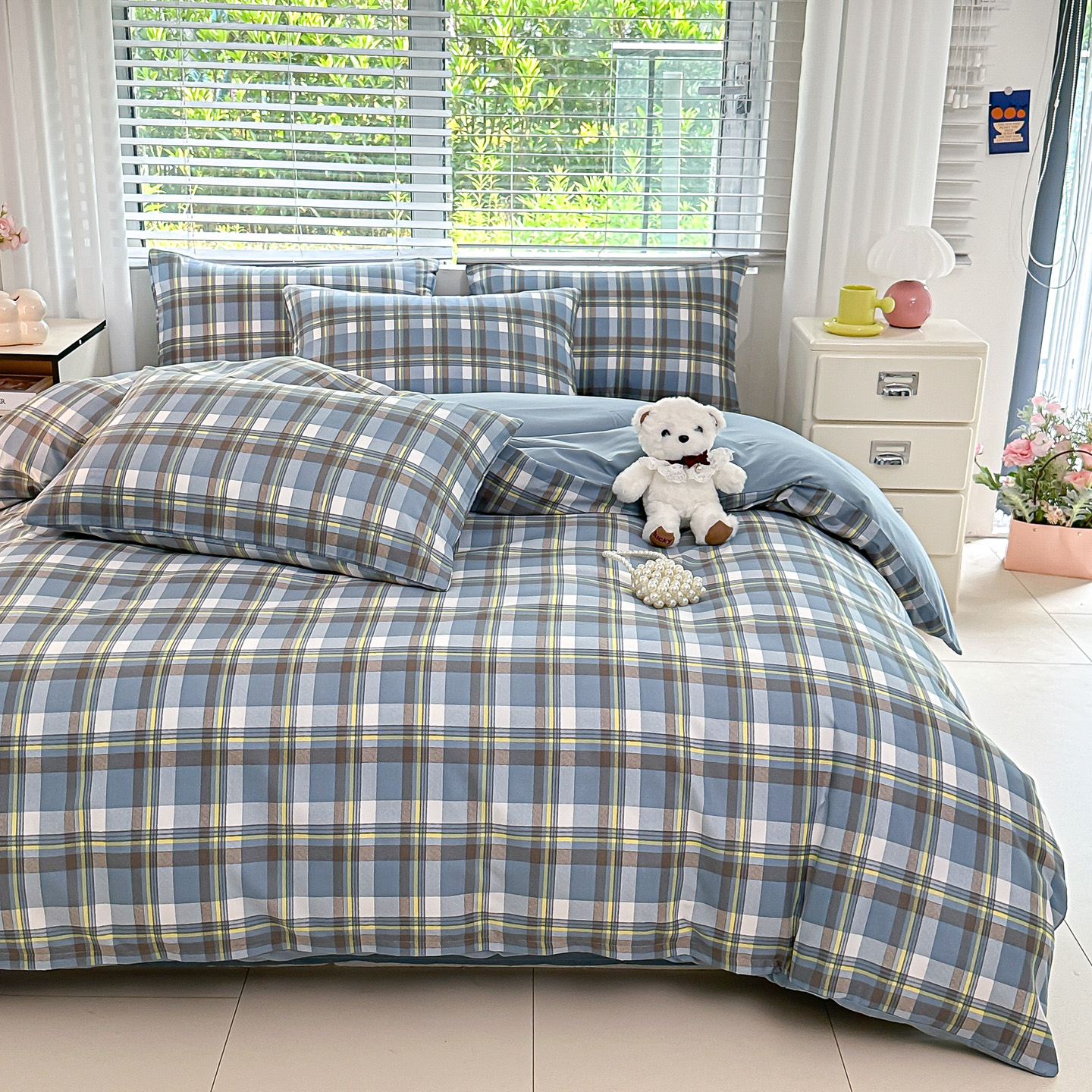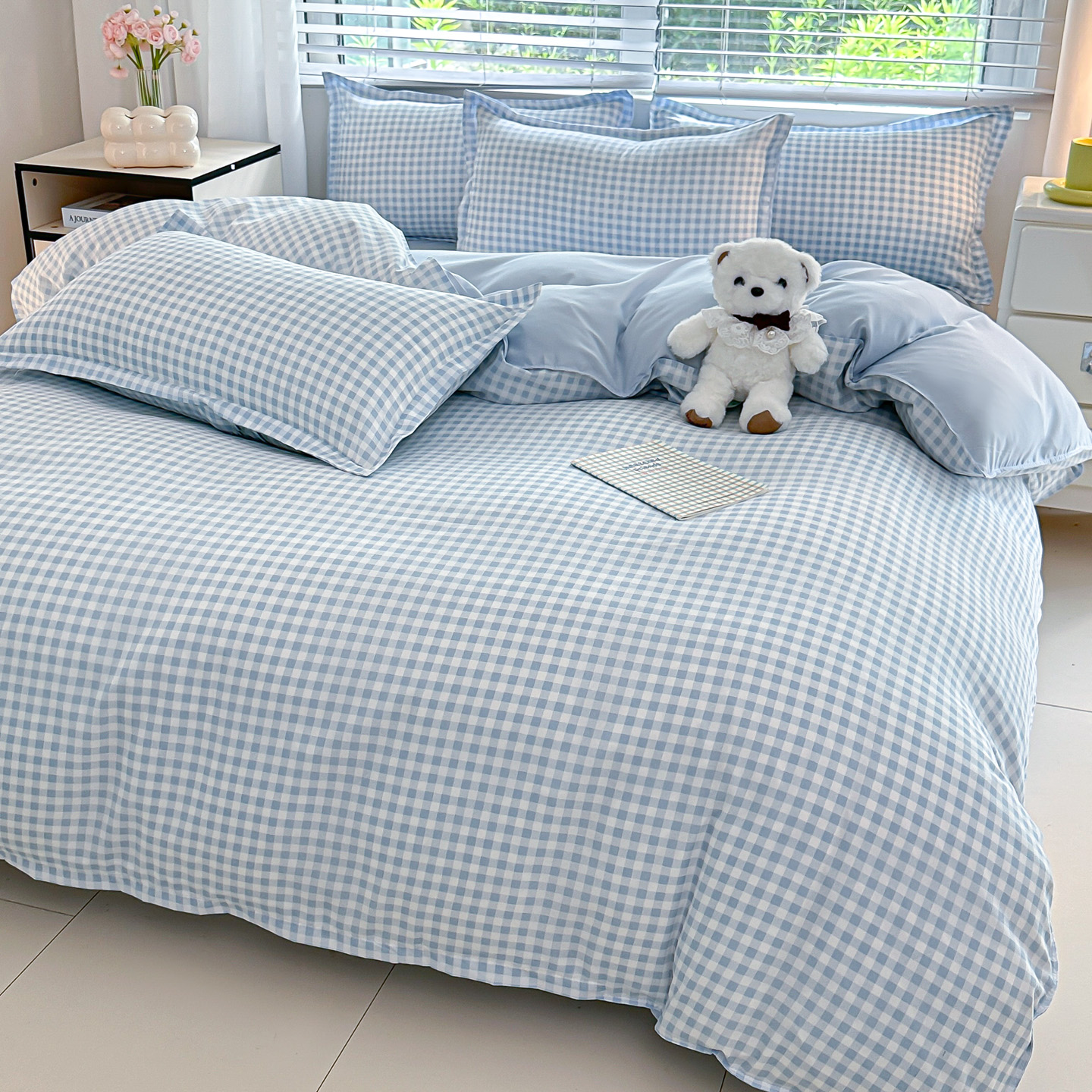 当前位置: 91家纺网 > 商品网购 > 床品套件 > 四件套 > 普通磨毛四件套 > 楠沐家纺 2025新款格子芦荟棉磨毛四件套 炫彩蓝格