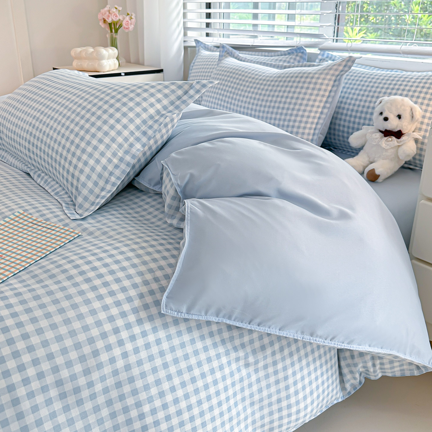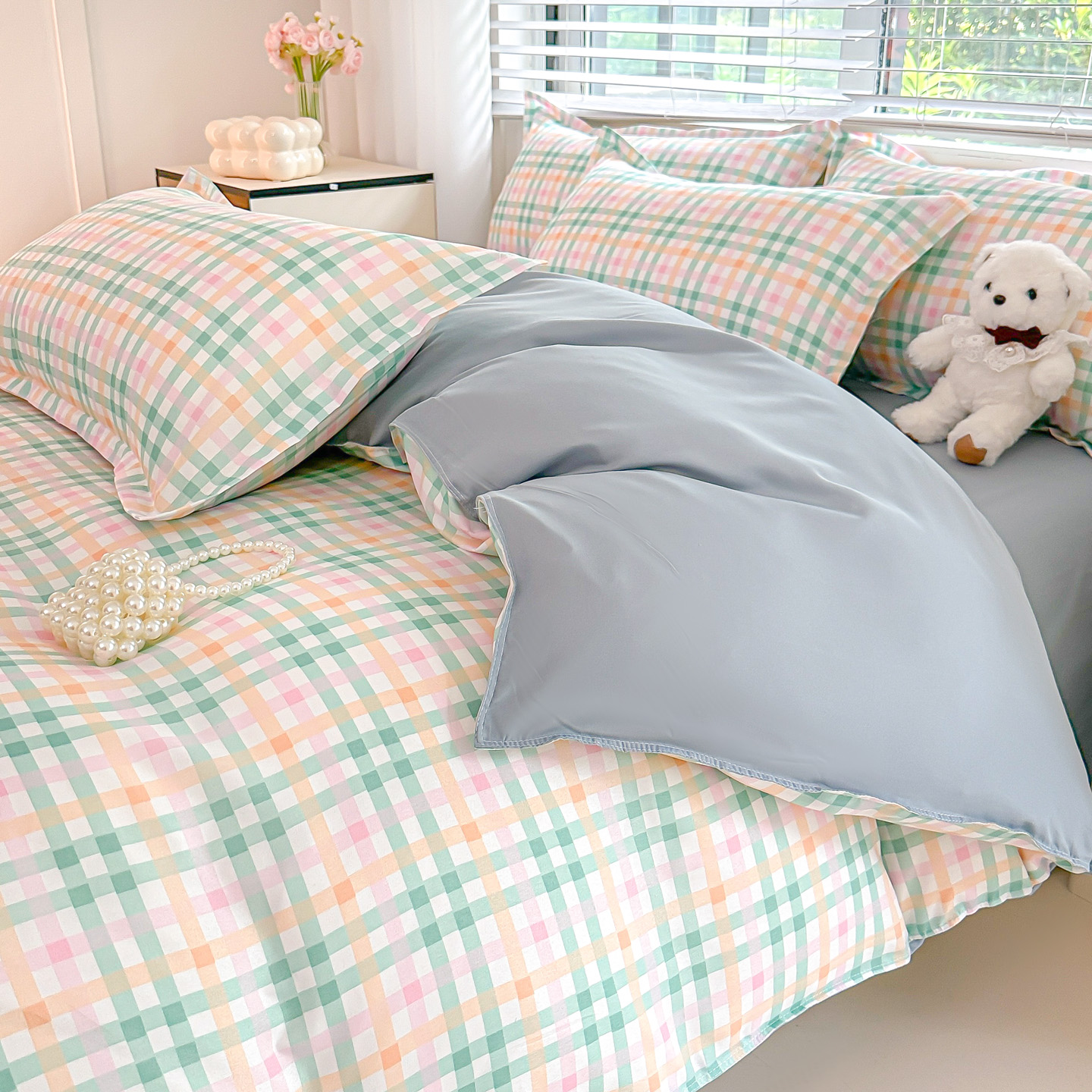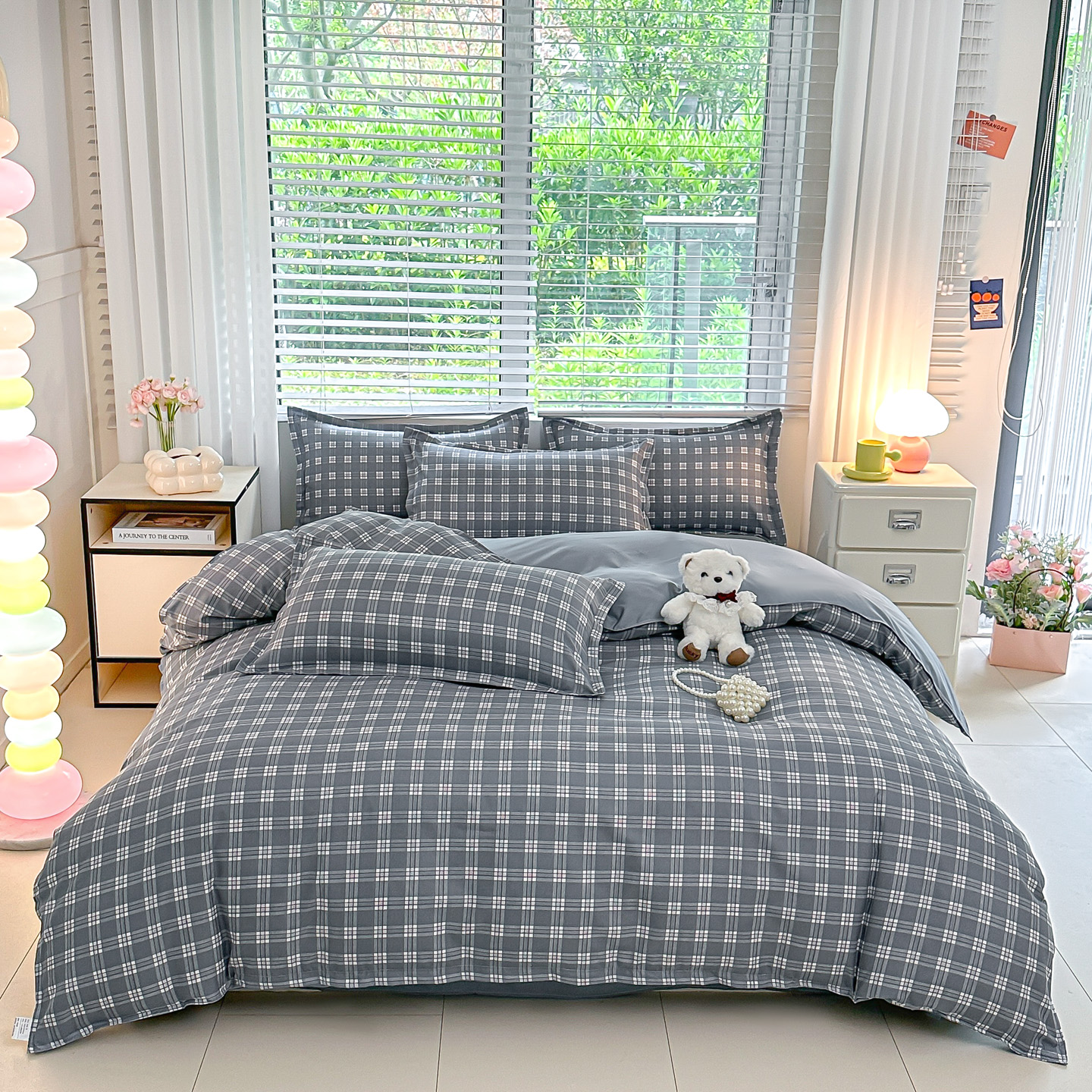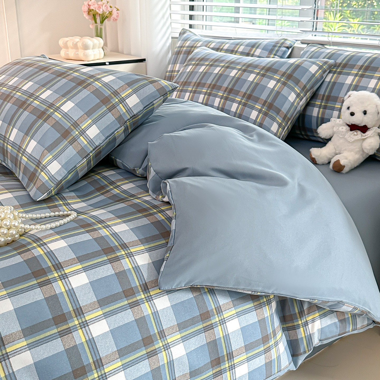 当前位置: 91家纺网 > 商品网购 > 床品套件 > 四件套 > 普通磨毛四件套 > 楠沐家纺 2025新款格子芦荟棉磨毛四件套 炫彩蓝格